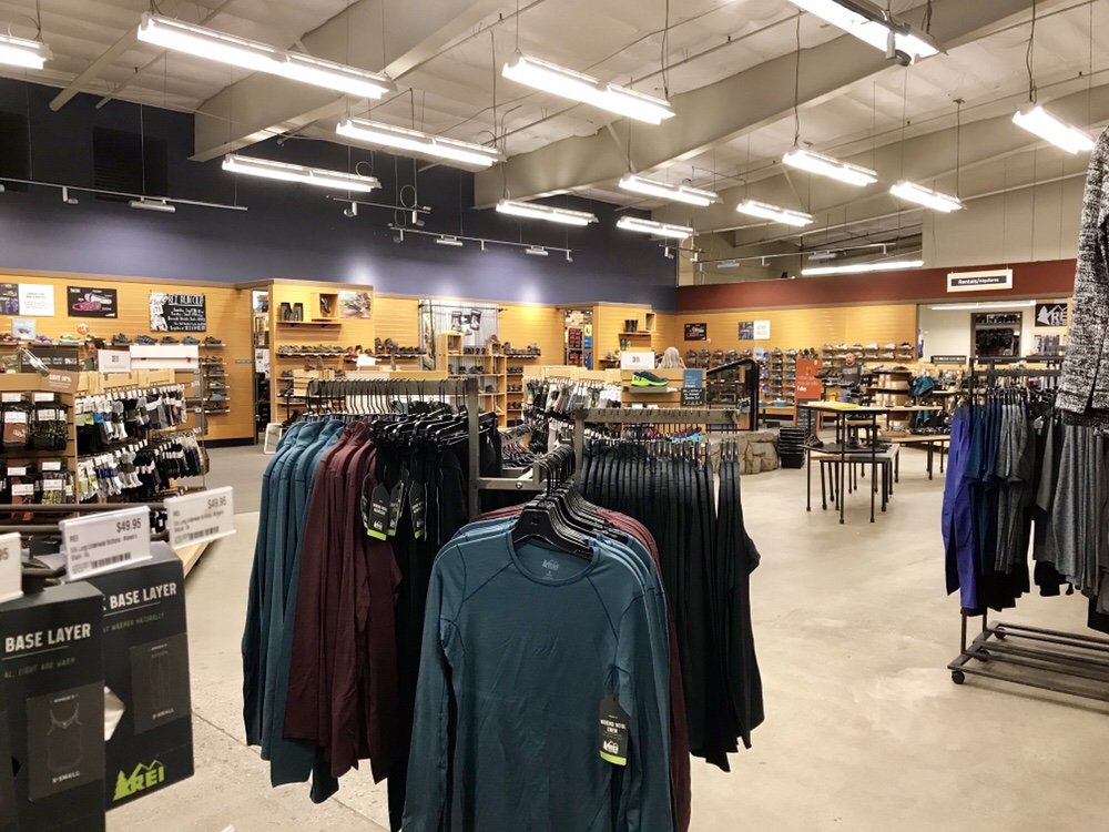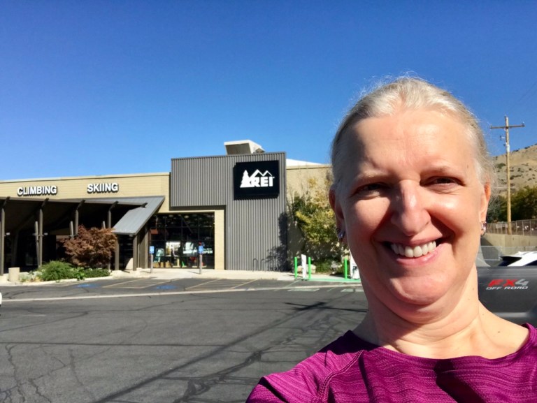 We left and went to REI, taking the surface roads rather than the Interstate so we could see a little of SLC. Another store for our REI collection! We spent quite a while browsing. I eventually bought some shorts (which was the plan), Andrew some tops (also the plan), and us both a belt and a water bottle for the new bikes…