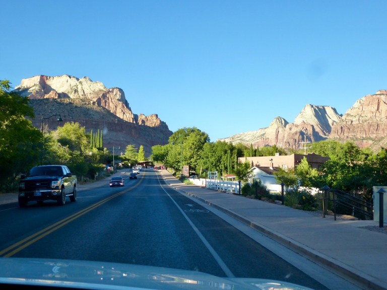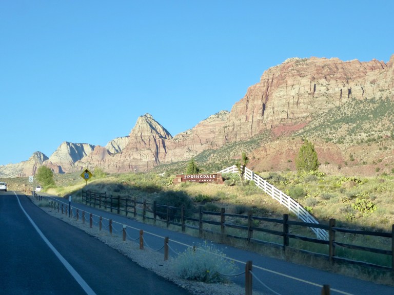 The scenery changed with red creeping in to the rocks. Eventually we left I-15 and turned towards Springdale.