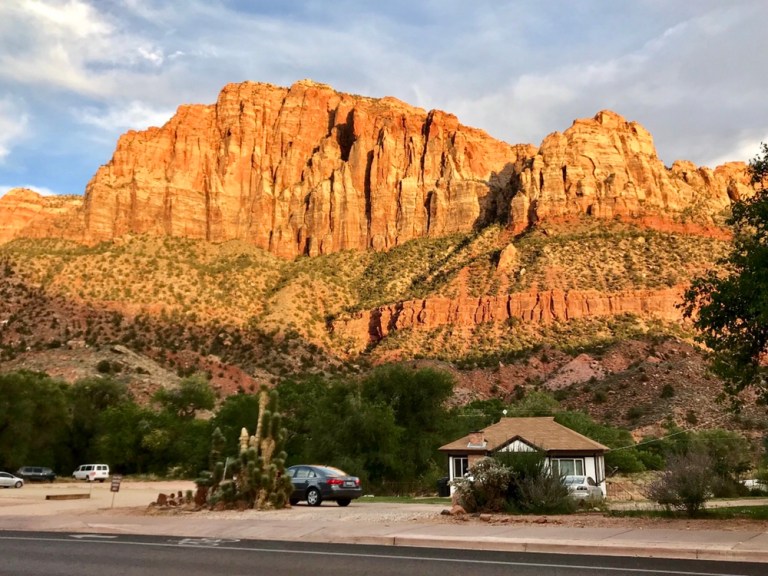 We shared a table at dinner (note to those familiar with the layout: we have been eating in the back room where the bar is, as it had some air con, rather than the front patio, which was just hot) with ‘Chris’, an American who likes football, in particular Manchester City. We shared tips on trails, National Parks, and places to see and he was good company. We did take our leave promptly though, which meant a final chance to see the sunset as we walked back.