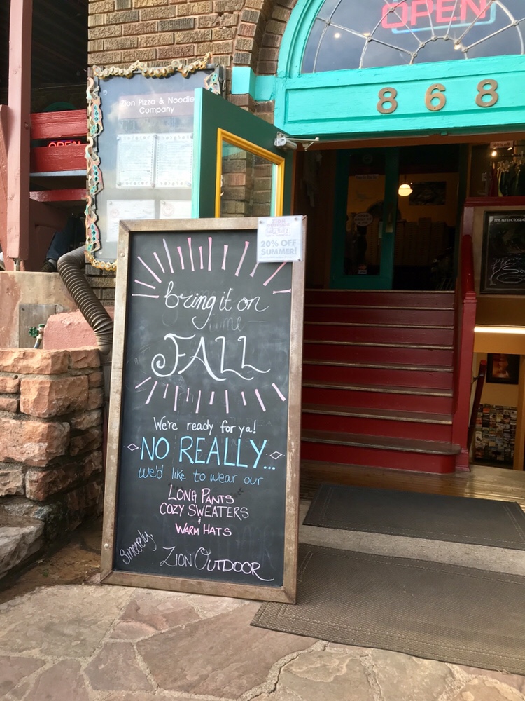 We also admired the Springdale scenery, and we drove a little bit. Um…we had lunch at Cafe Soleil. Dinner at Pizza & Noodle. Did some laundry. And that’s about it!