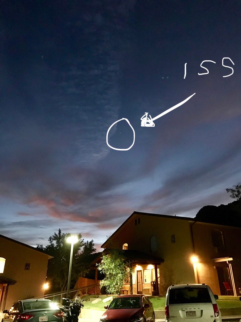 Oh. And we popped outside to spot the space station, complete with iPhone photos to prove it. It makes it seem a small world…by the time we were settled back in our room it was half way to Europe!