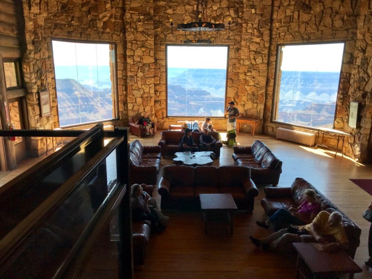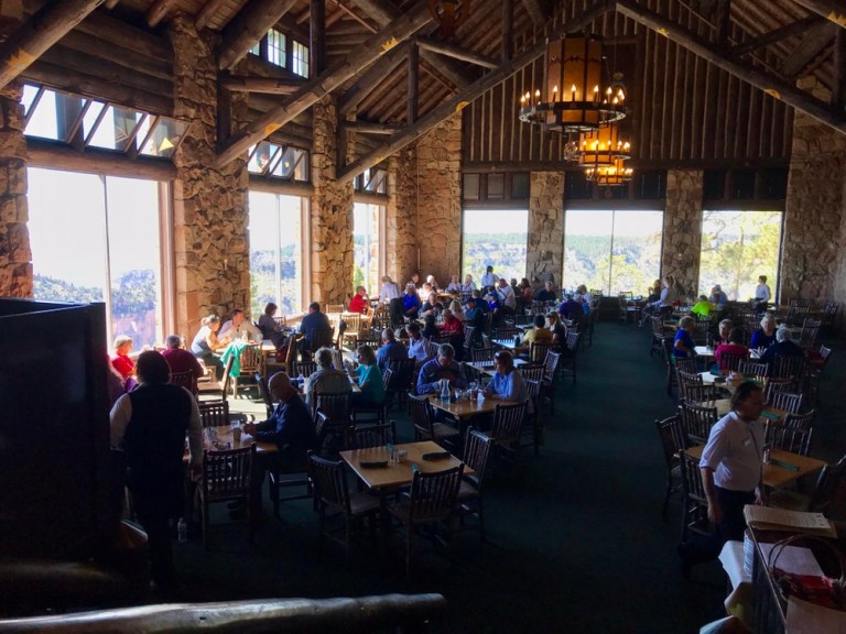 Our first port of call was the lodge, so that I could cancel our dinner reservation. Although it would have been lovely to eat in the historic dining room (and the menu looked good), we were both agreed that we would be too tired to wait until 7pm for dinner, have dinner and then drive 50 minutes in the dark back up the road. We had a little nosey around the lodge again and looked at the canyon.