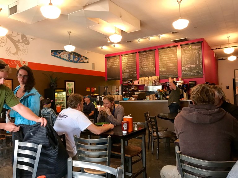 We continued south to Desert Dreams shop so that Andrew could look for a new hat. He found two, and a Columbia jacket he had been wanting, so a great result! After that, I won the debate of where next and we returned to Love Muffin! It was noon, so we had lunch as well as coffee. If there is one thing that America does a lot better than the UK, it is salads. Actually, most places do them better than the UK… anyway, they were great. While we were eating there was heavy rain, but it had stopped again when we emerged.