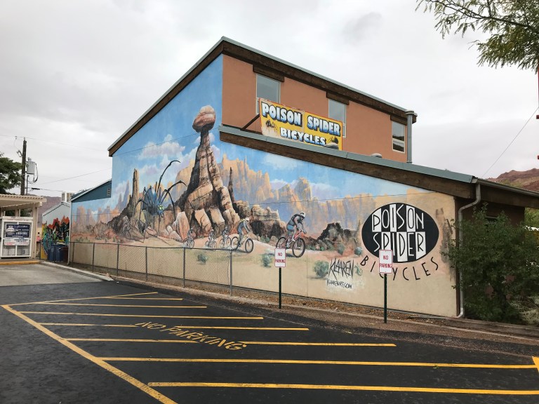 We then walked back south down the other side of the road. So many new places have opened up over the years. When we first came to Moab, Poison Spider was almost outside of town. Now, it is part of an extended Moab Street and hotels are almost opposite, with others built further out.