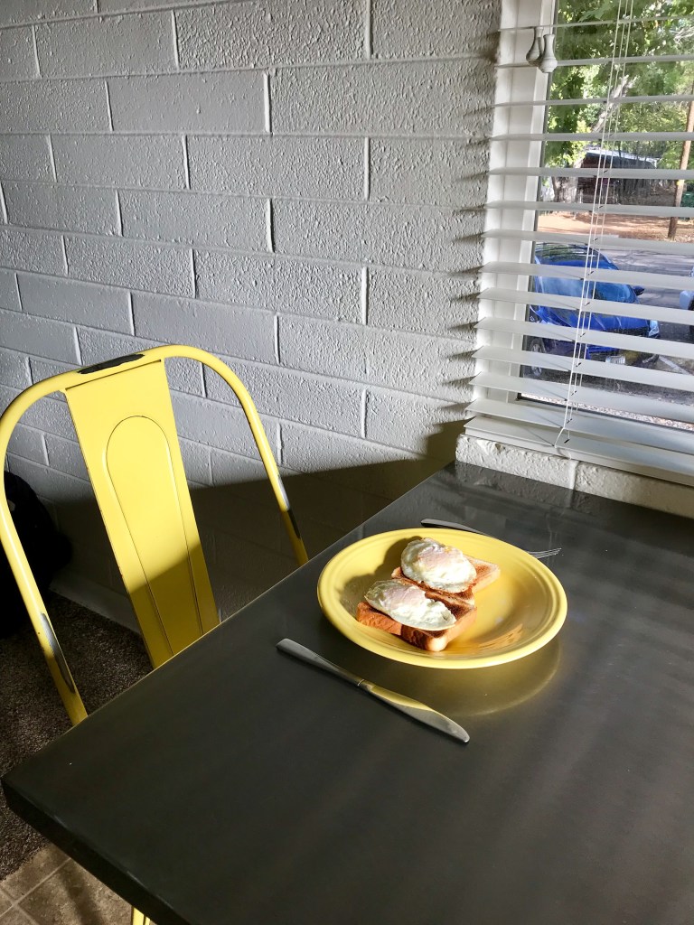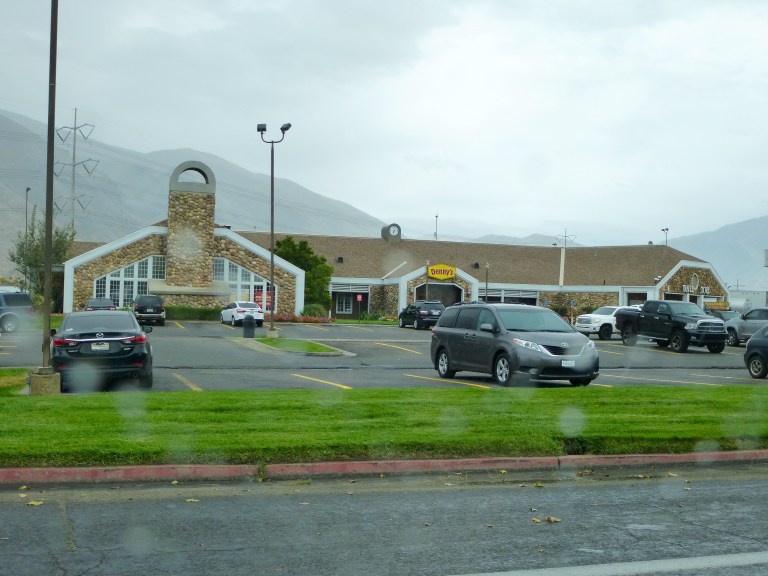 We stopped at the same Denny’s as on the way down, because we knew it to be a nice one with good service (and were not disappointed). We also got the coats out here!