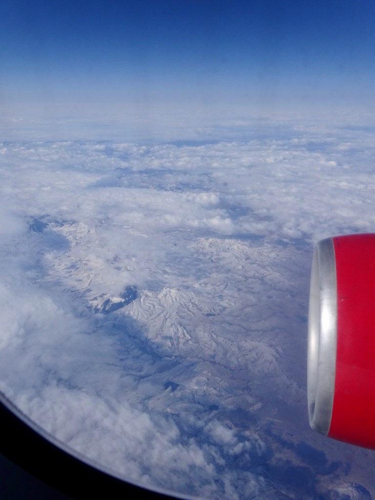 There was a brief glimpse of fields then snow covered mountains in northern Montana. Then more cloud until just north of Salt Lake City.