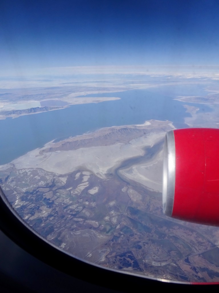 From there we were treated to views of the Great Salt Lake, Antelope Island (last year’s holiday), deserts, farmland, the Virgin River and Valley of Fire state park (which we hope to visit tomorrow) before reaching Lake Mead and Las Vegas.