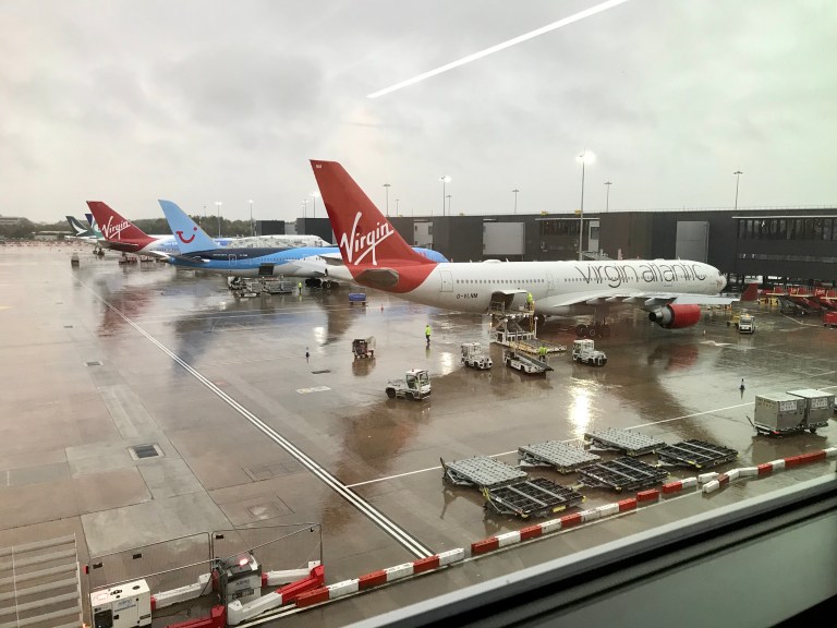 We didn’t have to wait to long to drop the suitcases off, although the luggage belt was not operating and so people and suitcases were starting to back up. We were lucky not to have arrived later. We left our cases in the (hopefully) capable hands of a Virgin employee to be loaded onto the belt when it worked and headed off to a very busy security. I had to unpack everything. Nevertheless, we were through all of this process little more than an hour after leaving home.