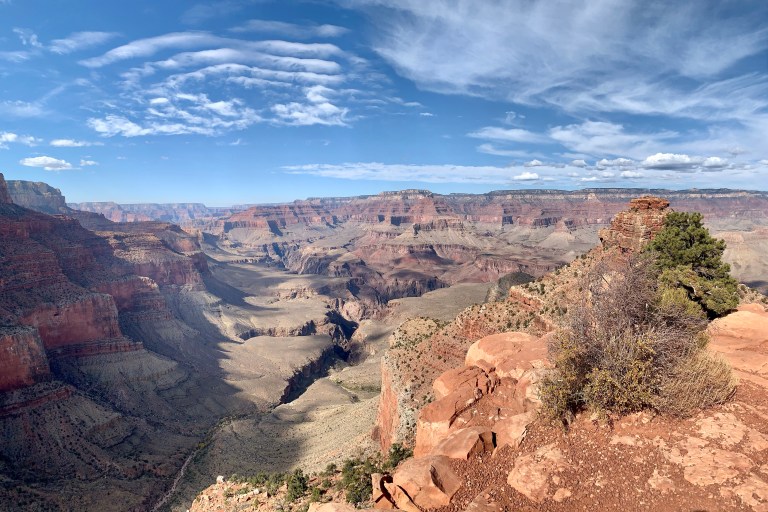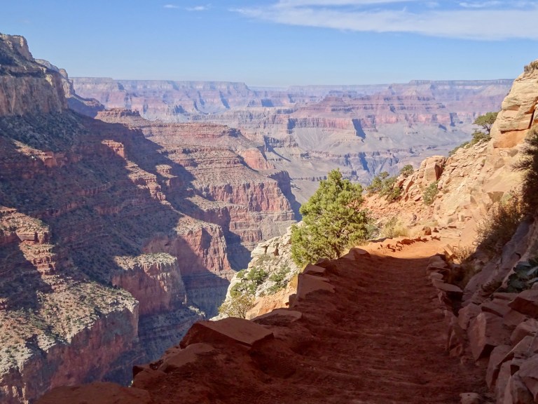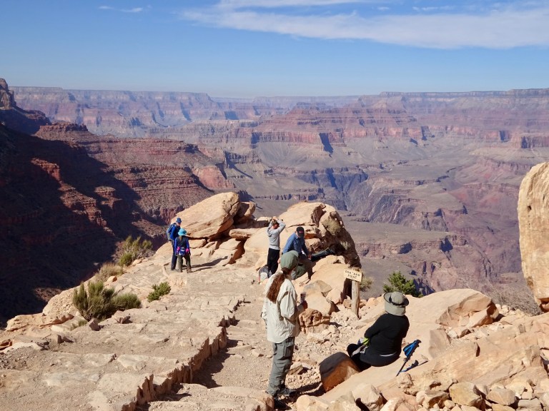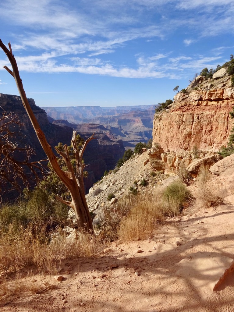 We drove to the visitor centre where we parked and got the shuttle bus to the South Kaibab trailhead. South Kaibab is one of our favourite trails here. We set off, enjoying the views, passing Ooh-Aah Point and reached Cedar Ridge after an hour.