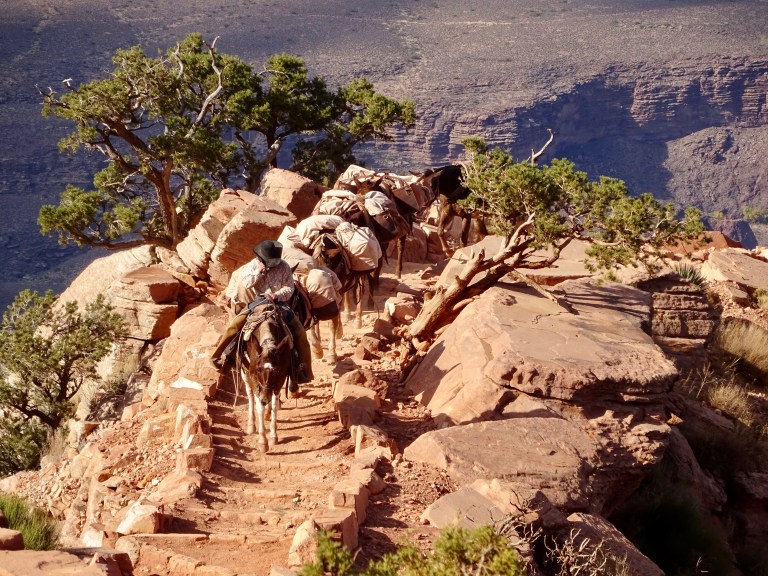 The mule supply train passed us whilst we were on the way up. They are very well trained and very resilient animals. We also spotted some birds circling on the thermals near the cliffs. Maybe hawks???