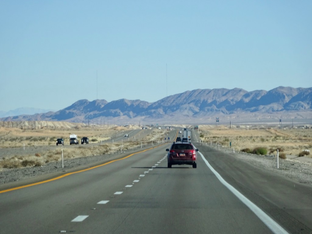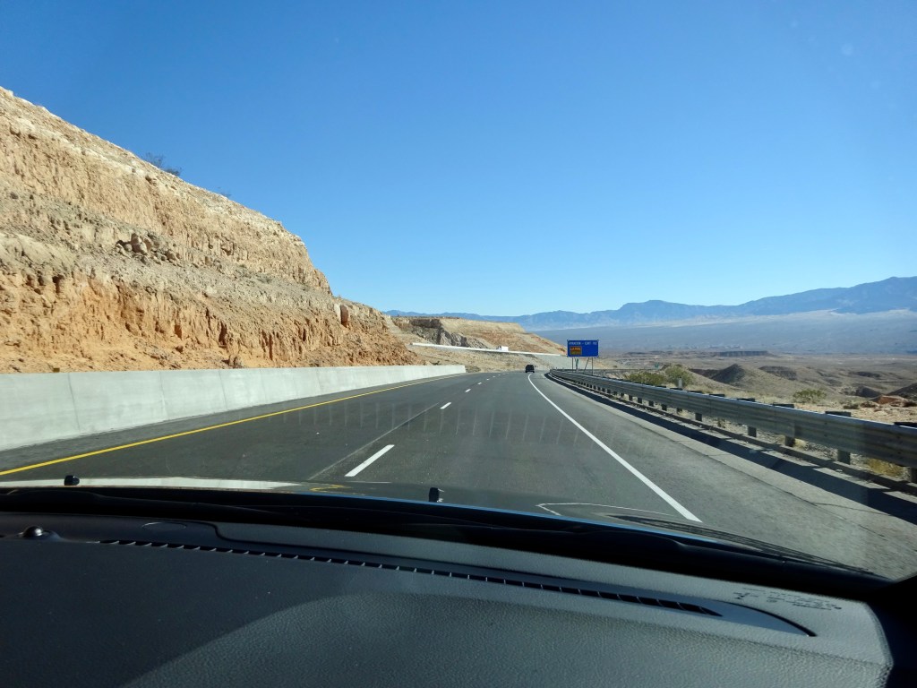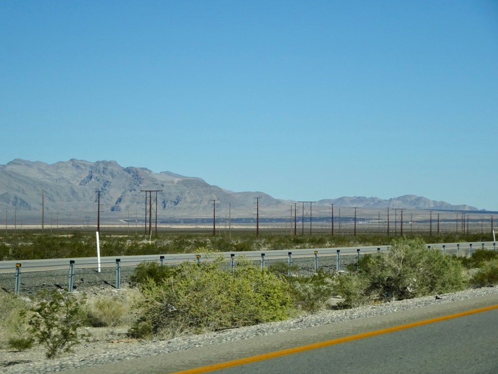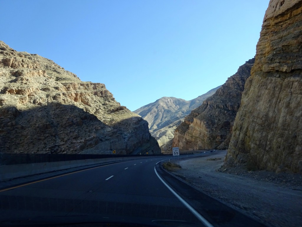 The traffic was reasonably light, and we really enjoyed seeing the mountains, desert and canyons as we travelled north. We noticed a few changes along the way, a solar farm in the desert and new highway works being the most obvious.