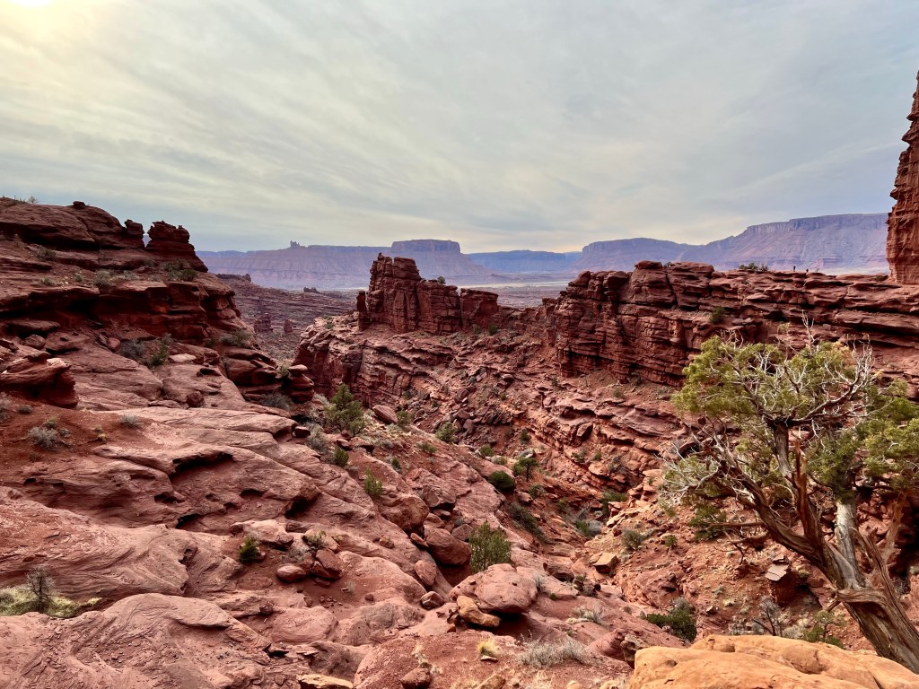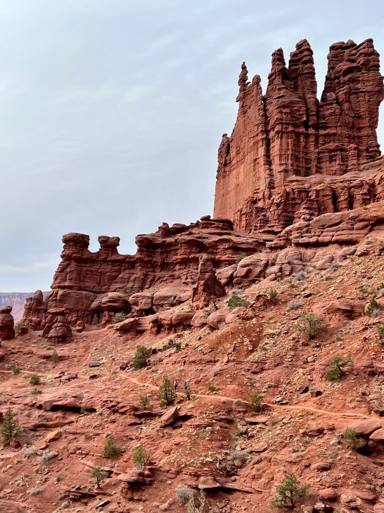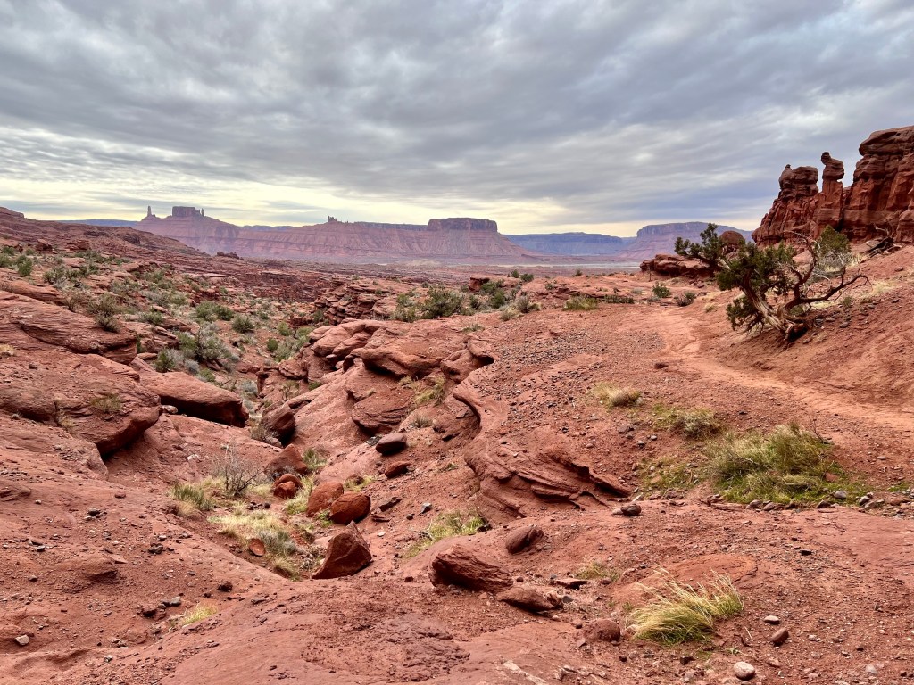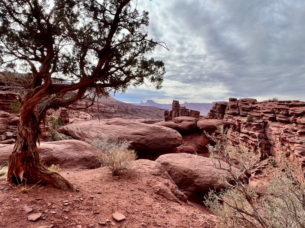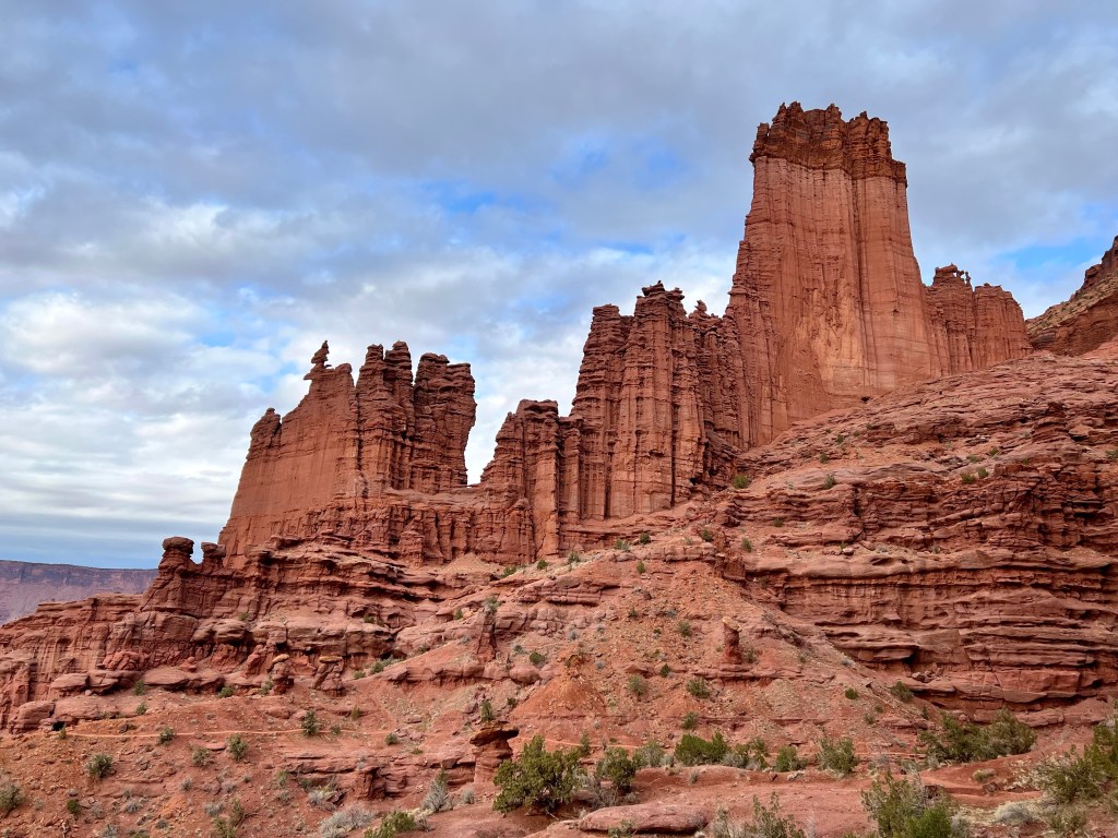 A good night’s sleep was had by all, following which was our customary breakfast. We layered up and brewed tea and then set off up highway 128, more generally known as the river road. After 25 miles and 40 minutes of winding canyon scenery, the route finishes with 2 miles of dirt road before ending in a car park at the base of stunningly tall cliffs and towers.