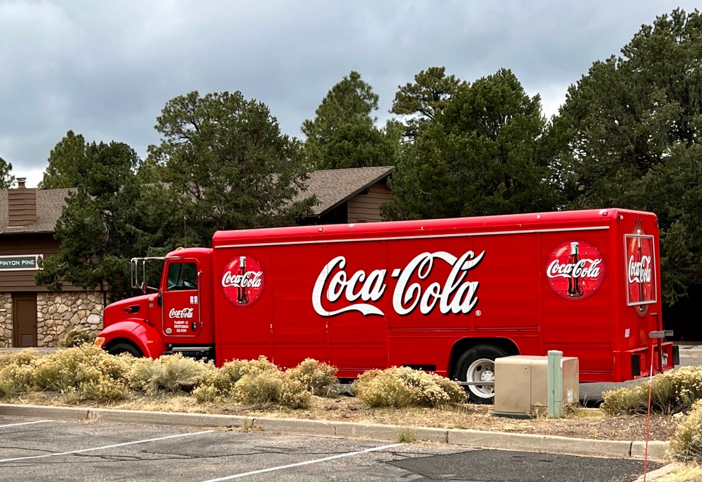 We had an early night, and I slept well but, when several of the neighbours were walking up and down outside (it’s a metal framed structure that makes noise) and talking loudly and excitedly, I still wanted them to just go away and let me get back to sleep. It wasn’t even 7am. Luckily, they did eventually depart and I did get back to sleep. As a result, it was a late start, with in-room coffee, before I demanded that we go for breakfast because I was hungry. I had the oatmeal today, which I’m sure used to be called ‘hiker’s hot oatmeal’…or maybe that’s a name we made up? (Oh. And for those who see the Coca Cola advert as the start of the festive season…the truck has been sighted here!)