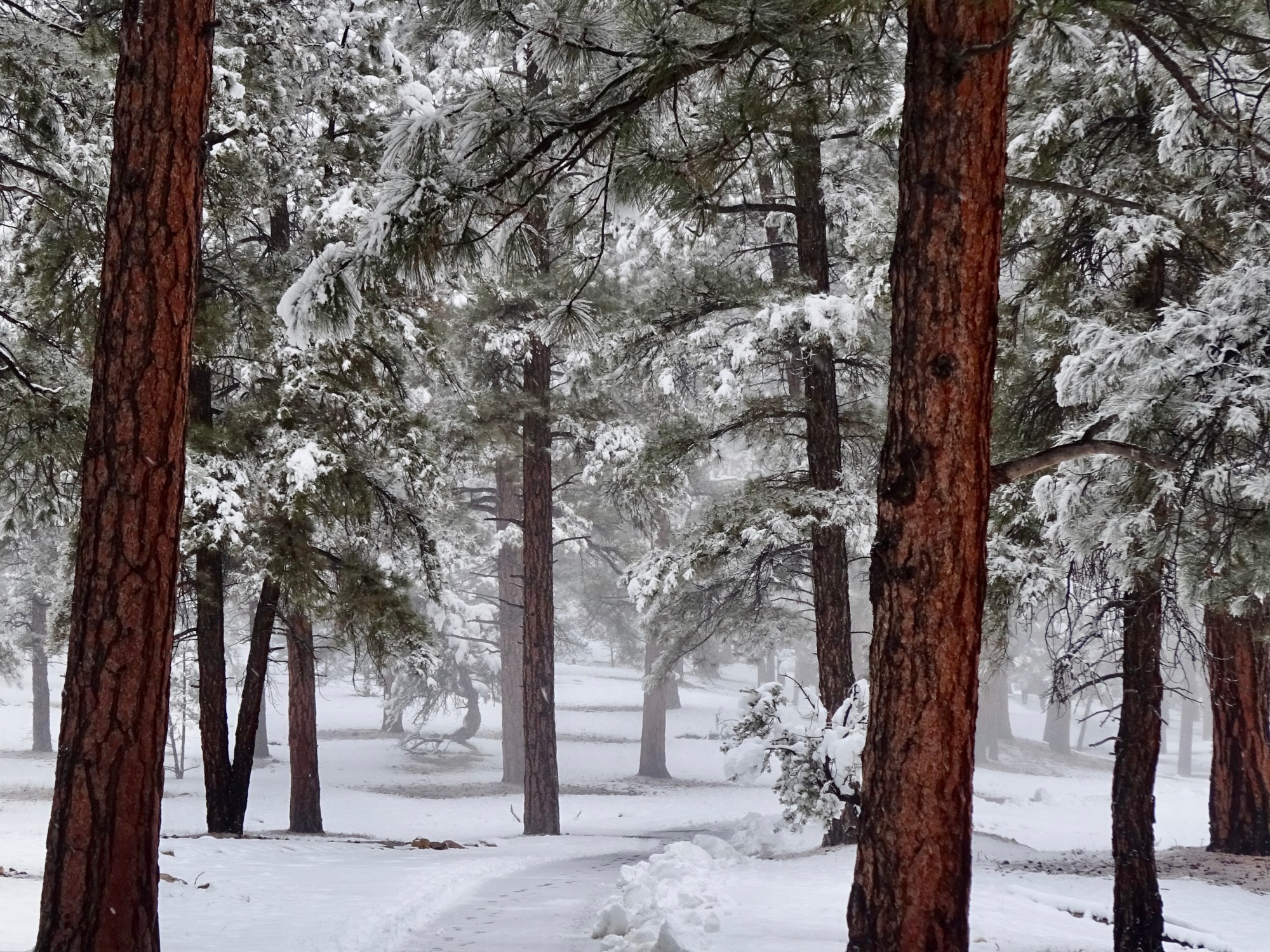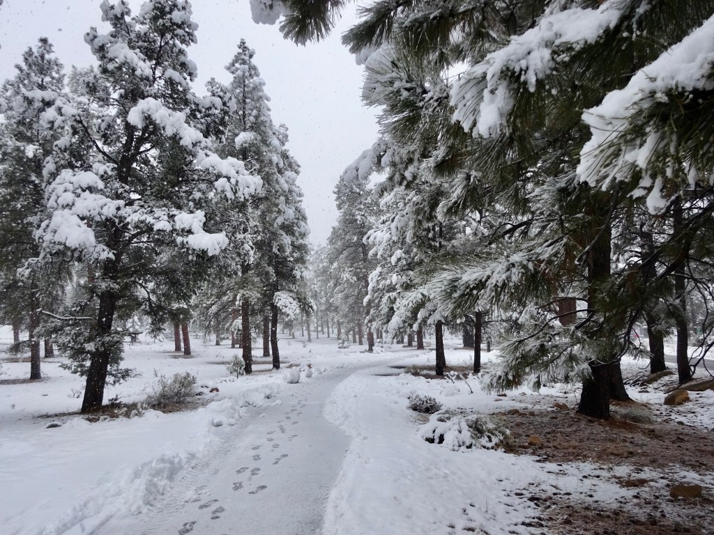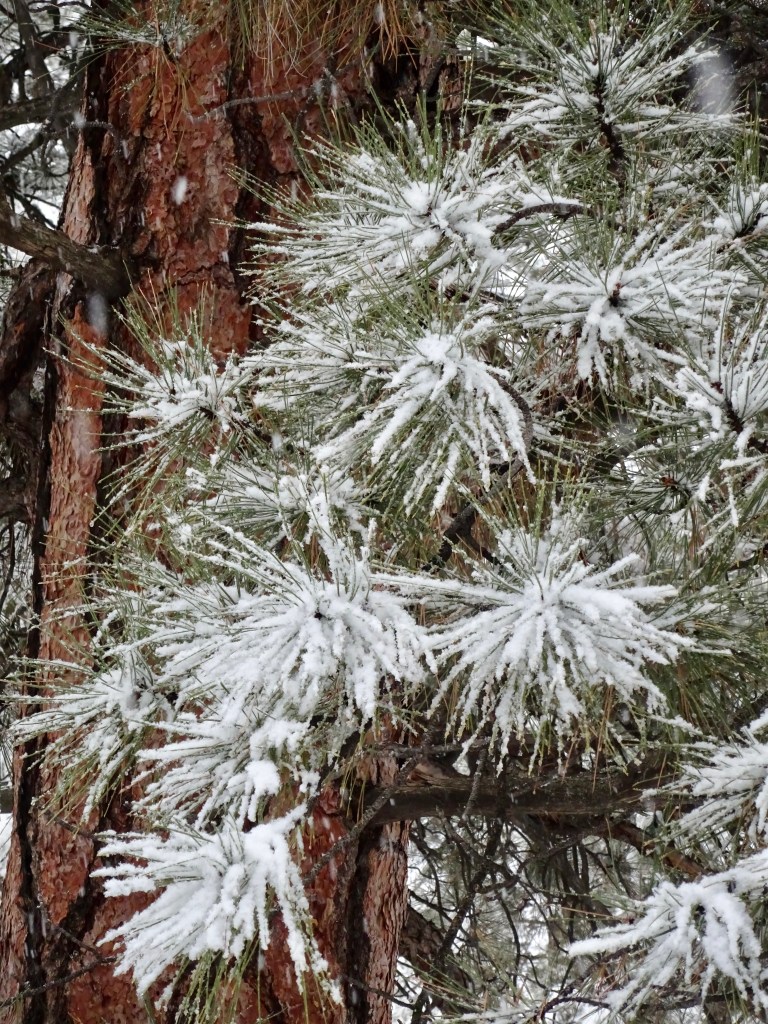Then we walked down to join the Greenway trail, and followed its snowy path through the faintly vanilla scented ponderosa pine trees.