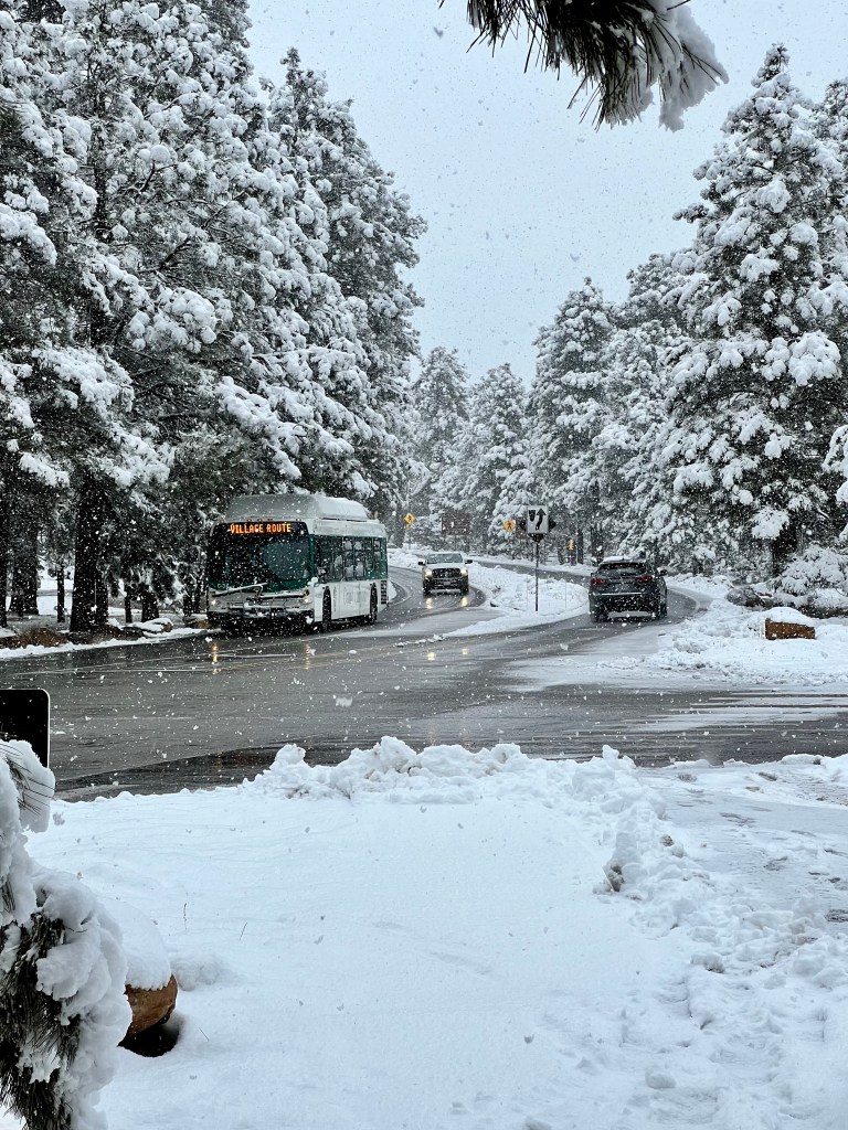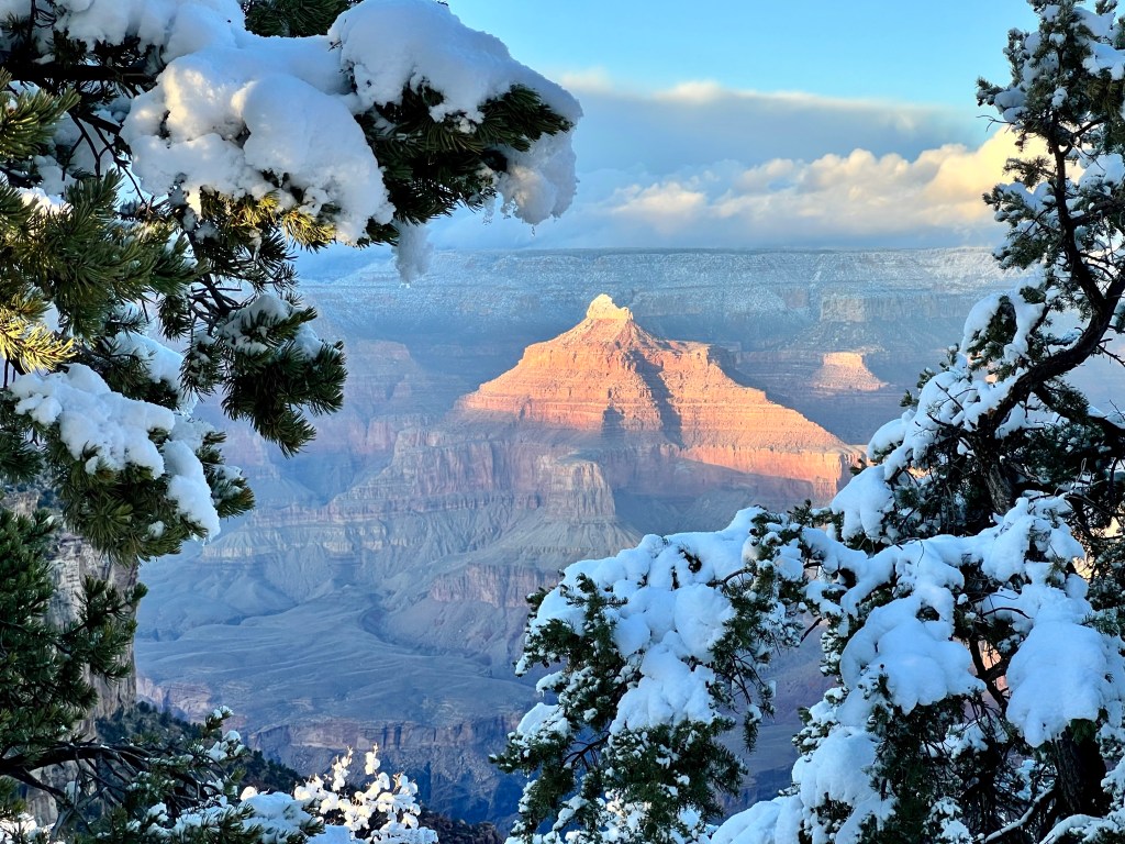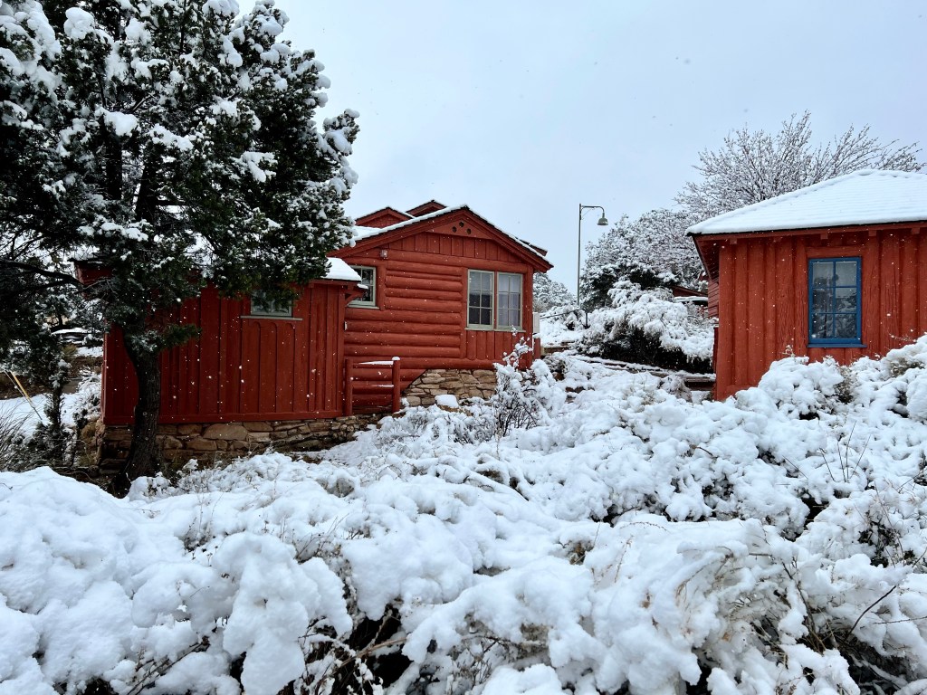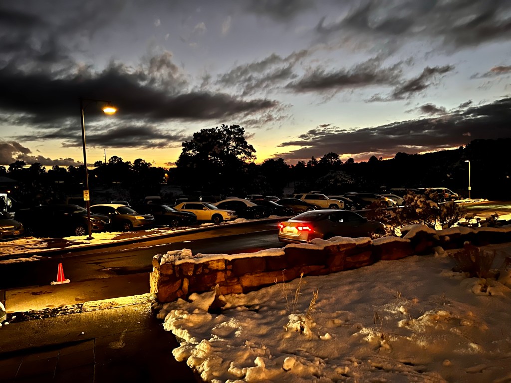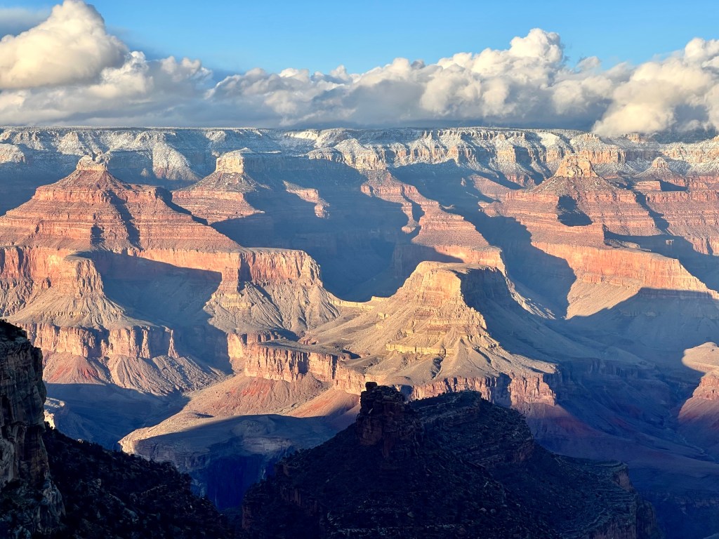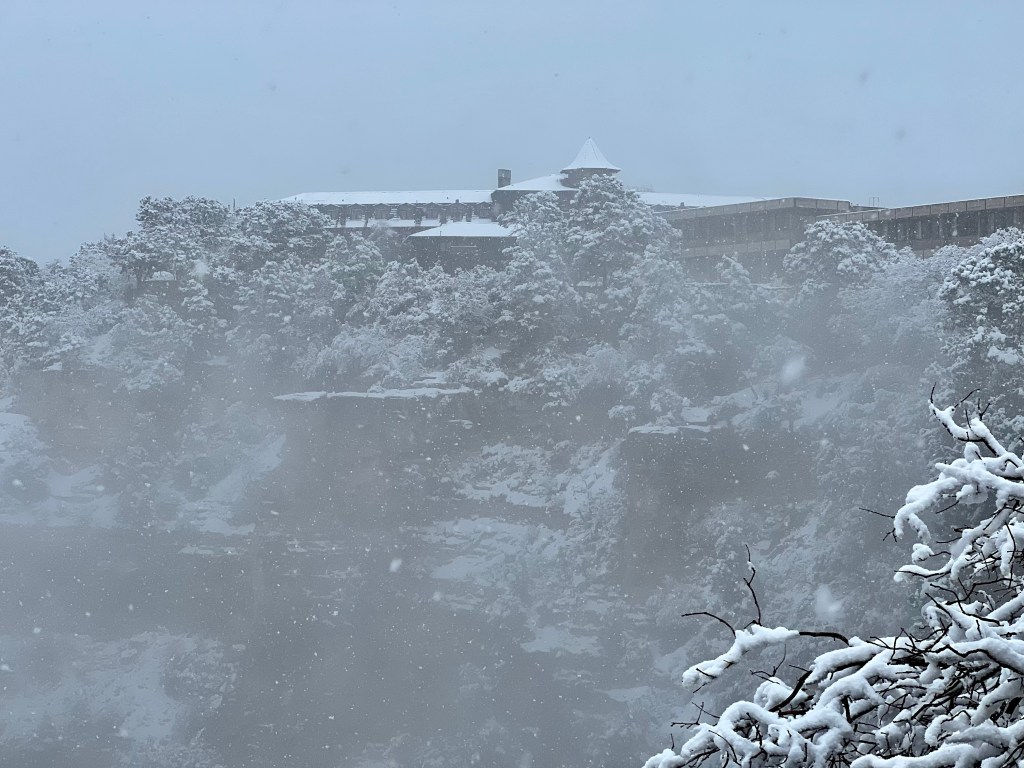 It was definitely cold, and I didn’t fancy the icy walk back to the rim, and the potential for slipping over, but I did eventually drag myself out onto our balcony…as ever, they need proper editing at home, but you’ll get the idea! The moon was too bright to photograph with the camera lens I have with me, but it lit up the snow, and the clouds were speeding past the stars. And that brings our days in Grand Canyon to a close. Tomorrow, we drive to Las Vegas.