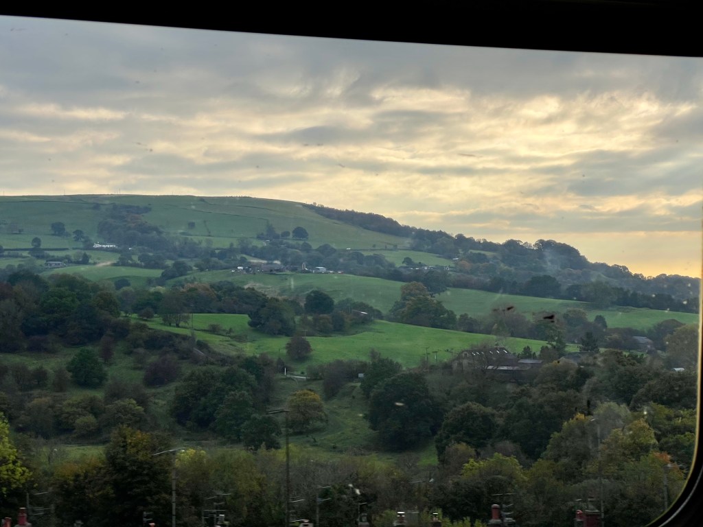 We bought tickets, and proceeded to the platform just as the train pulled in. Once aboard, we sat down but soon moved seats again to find a cooler spot on the train, before settling in for the ride to Manchester. Farewell green hills!