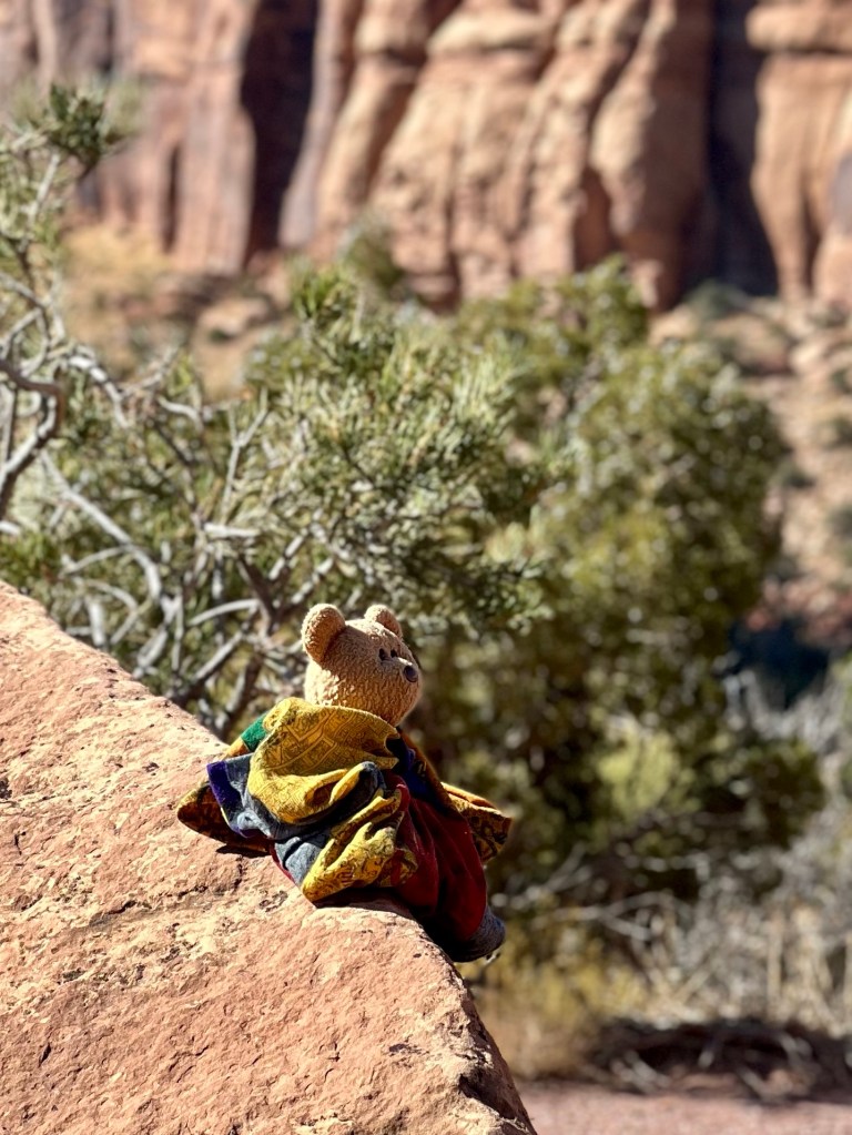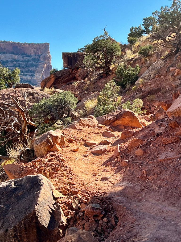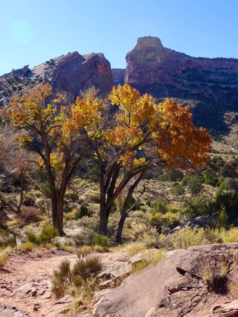 Our turn around point was at Independence Monument, which we saw from the rim on Saturday. After having our lunch there, comprising a Cliff Bar each and a flask of tea, we started on the return trip. There is an alternate route via Wedding Canyon, which is an unmaintained trail. We might try that one next time… (yes, we have enjoyed this park so much, that we fully intend for there to be a next time).