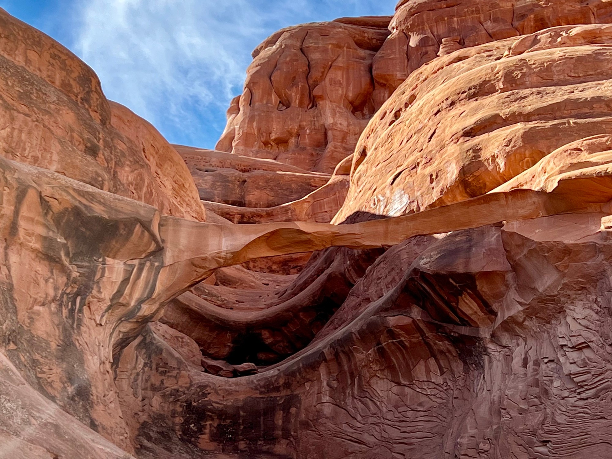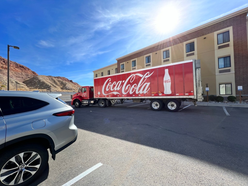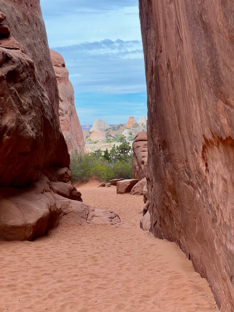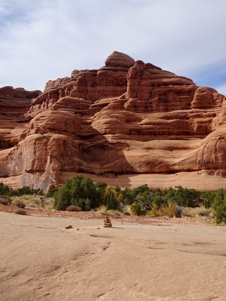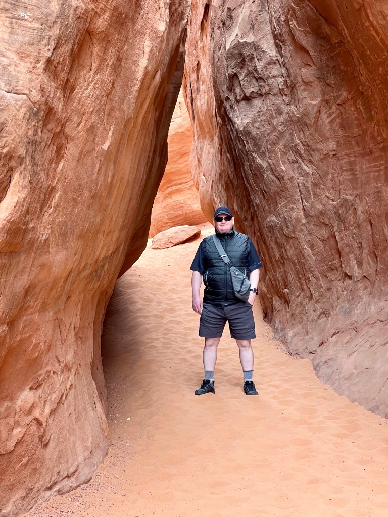 Once suitably conscious, we went down for breakfast. By now I’m a master of using hotel waffle makers. We got another cup of coffee and returned to the room to ponder our options. We decided to try going to Arches. It is the first day when timed entry permits are not required. They were introduced last year over the summer season to manage the number of visitors, and used again this year until thy end of October. Visitation has doubled since we first started coming, 18 years ago. We had Canyonlands identified as a plan B. Both would offer some (relatively) gentle hiking, at least compared to the more vertical options of the Moab Rim/Portal Overlook Trail or Fisher Towers.