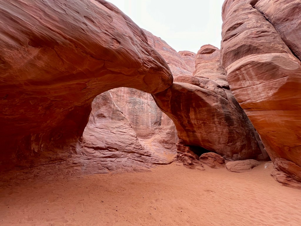 Back at the car we drive to a viewpoint over the petrified dunes and had our flask of tea and some chocolate (Dairy Milk, definitely not Hershey’s). After that we decided to drive through the park, and then do the short wander to San Dune Arch, as I wasn’t sure that Andrew had ever done it. The arch is a short walk in between sandstone fins.