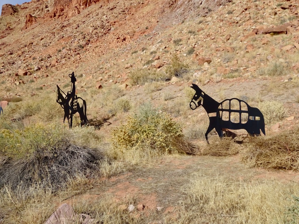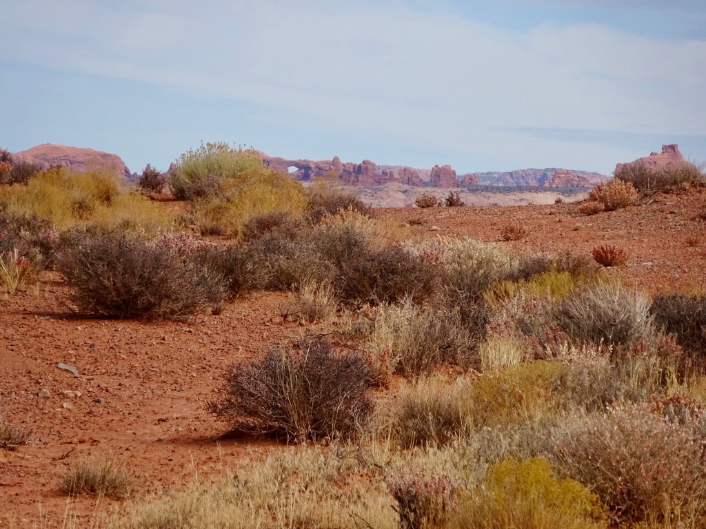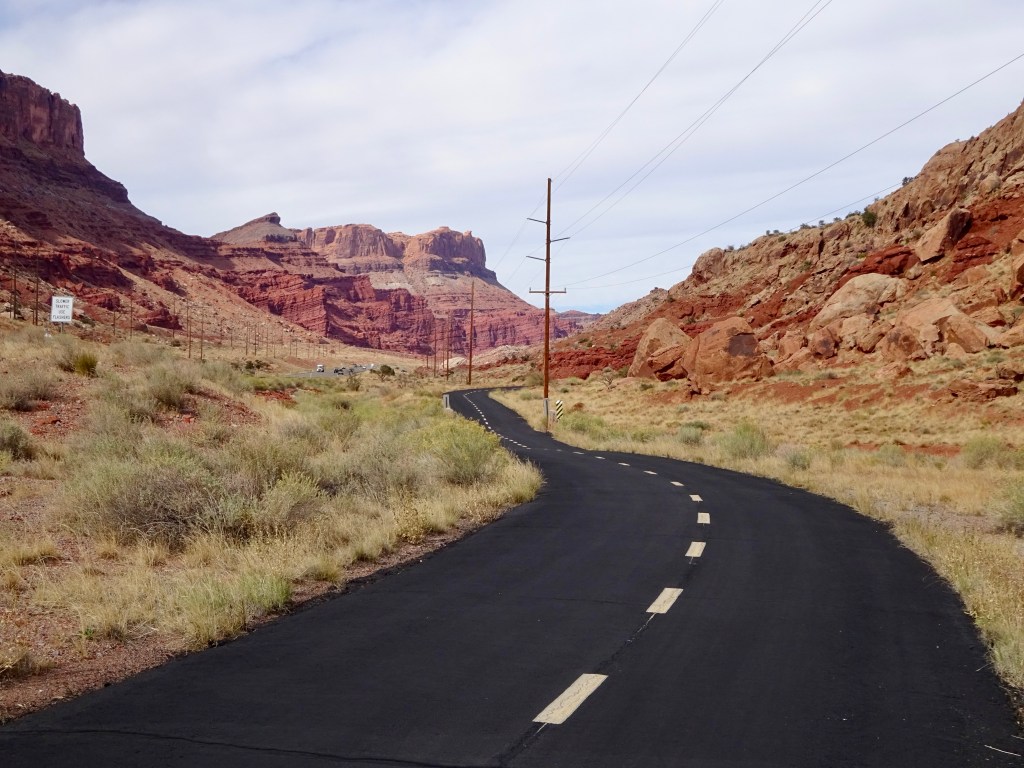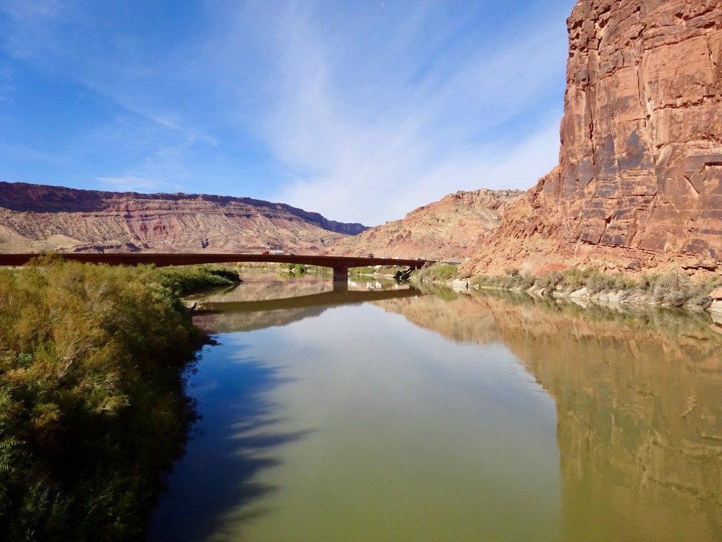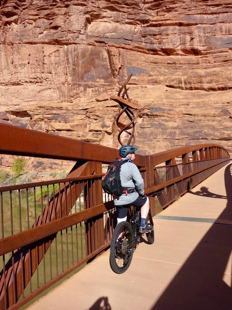 The trail reaches and crosses the Colorado on a separate bridge, then parallels the road up to Arches, where we nipped in to use the amenities.