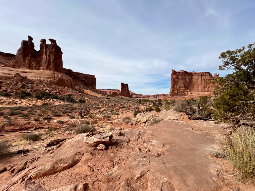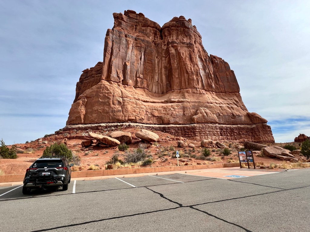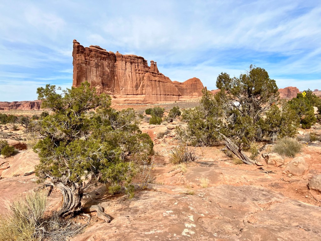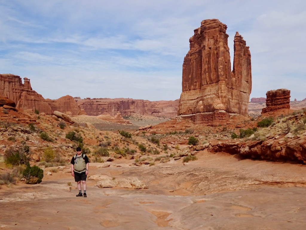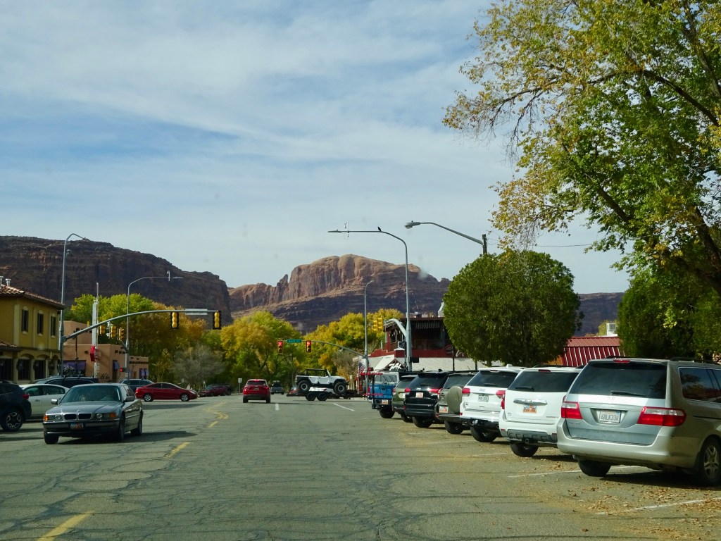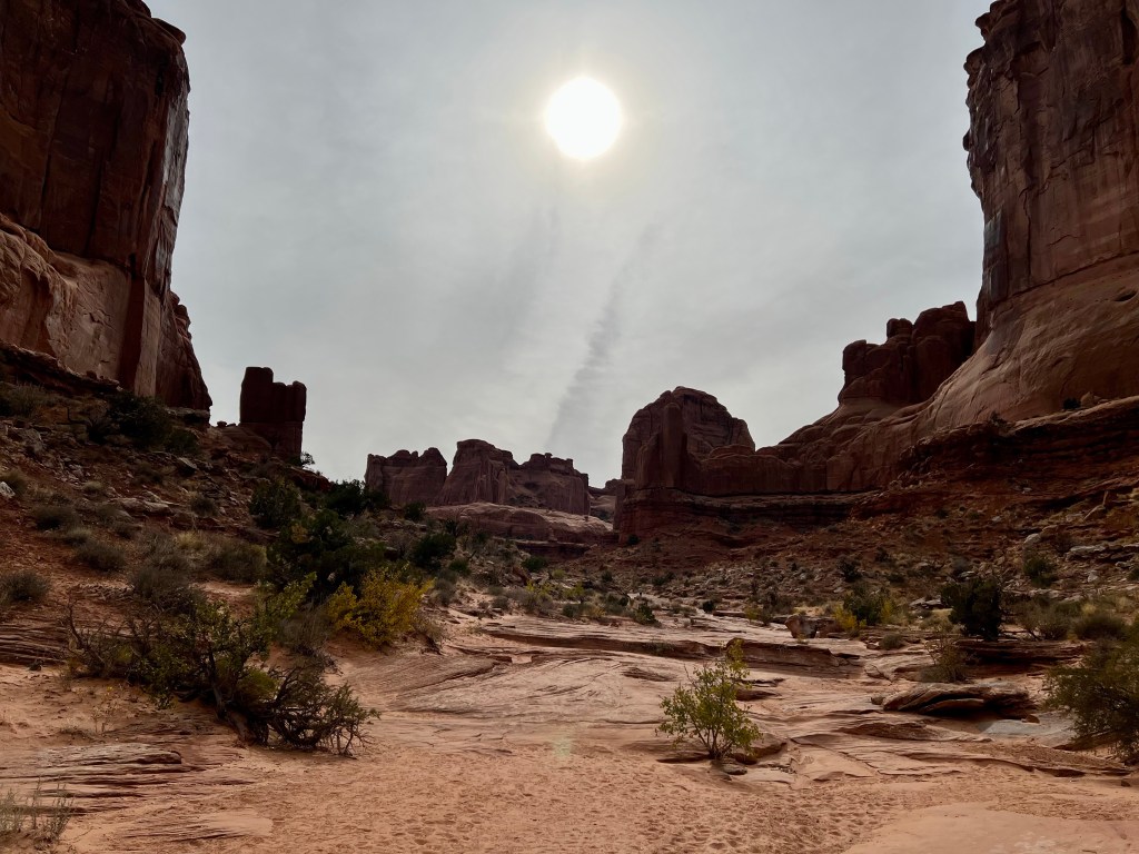 You won’t be surprised by now that we headed to Gloria’s for our breakfast. Yes, we know the menu by now, and yes, we already knew what we wanted. After a brief moment when they brought me the wrong meal (not veggie) they brought the right one over and we got stuck in. It was, as ever, slightly sad to be leaving Moab. We had a final trip to City Market, and then drove up to Arches.