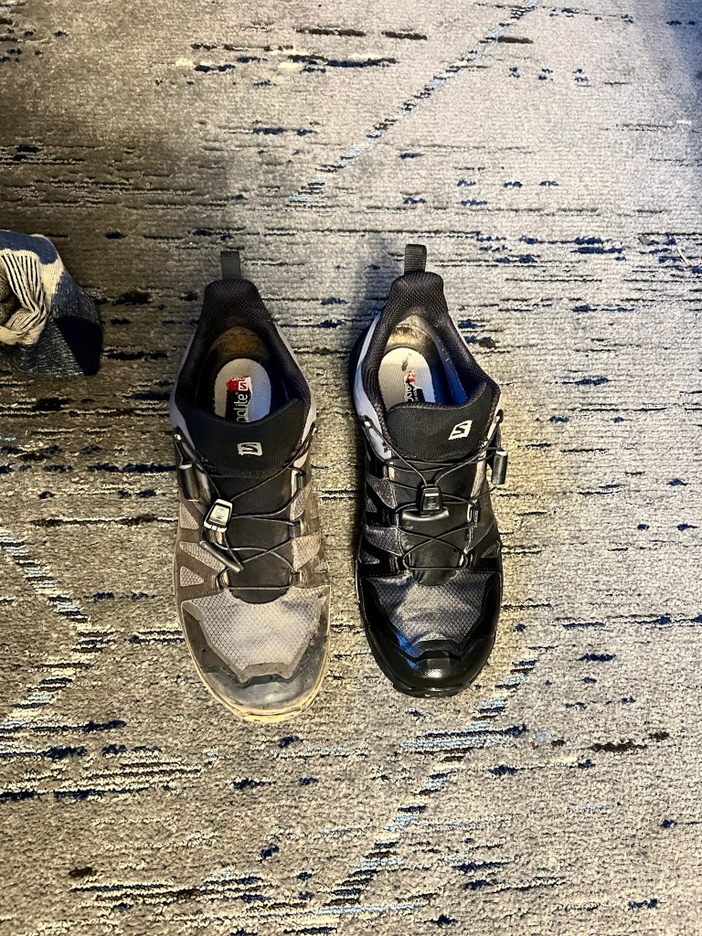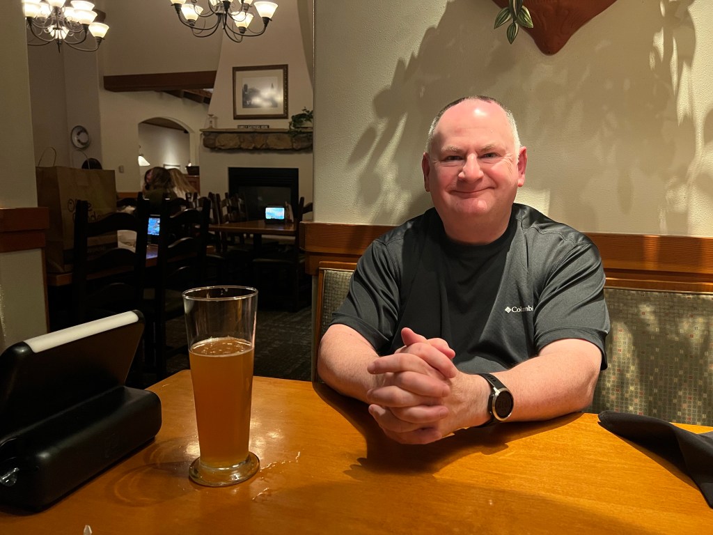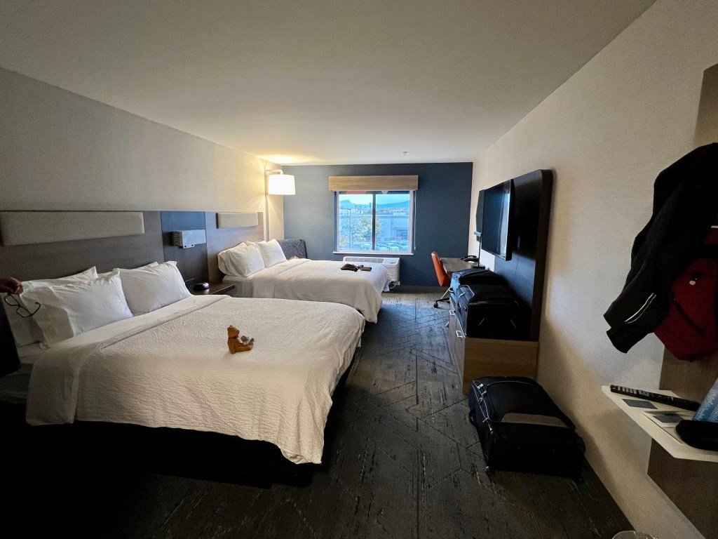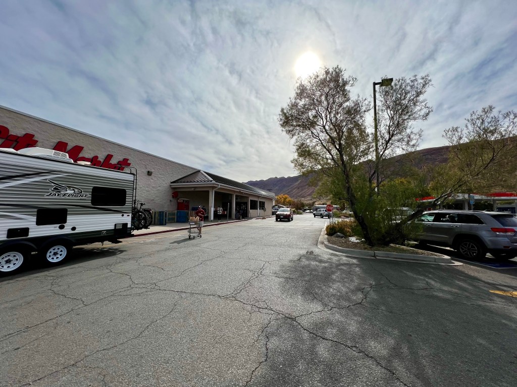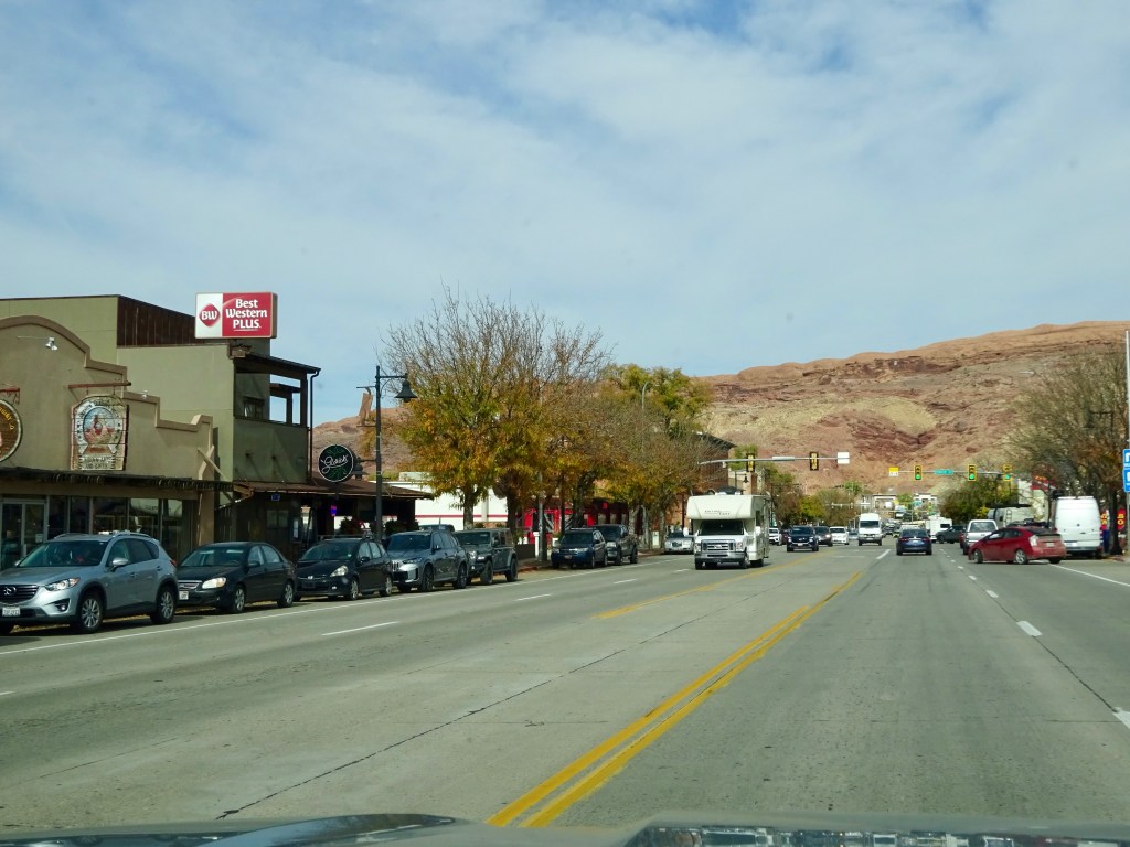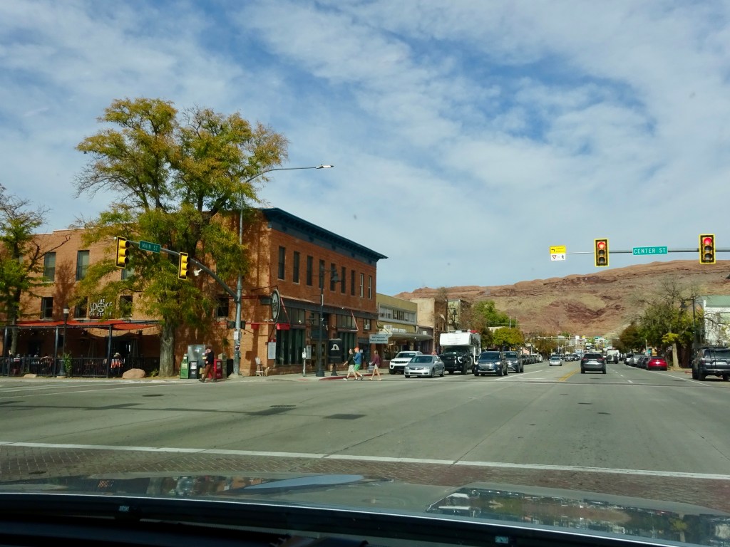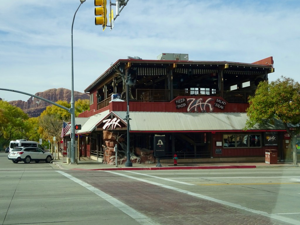 The roads were quiet and we arrived at REI (yes, again!) with time to browse and make another purchase or two. From there it was only a five minute drive to our hotel for the night, the Holiday Inn Express. This is not the same as our main stay here, but is slightly on the outskirts. It seems newly built, though, and very nice. It’s also near to City Market and some shops and restaurants. We moved all of our stuff in (these one night stops are when it would be good if it was all packed away again, but that makes hiking etc very difficult) and relaxed for a bit. Andrew did a good job of cleaning our ‘posh’ shoes and removing this morning’s red dirt and sand (our posh shoes are just trail shoes rather than hiking boots, but they’re the only thing we have for going out to restaurants!).