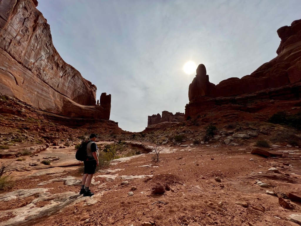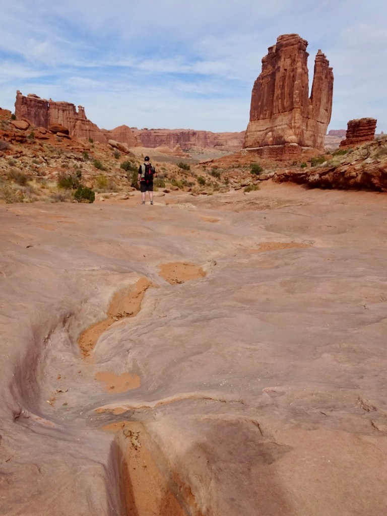 There was a small queue to get in, of about 15 minutes, but then we drove up to the Courthouse Towers, and parked where we had at night. This is located at the northern/lower end of Park Avenue, one of our favourite locations. We took our time, walking slowly and making the most of the views, and enjoying the peace and quiet. Very few people walk up between the towering cliffs, especially from this end. They typically just look at the view from the south and move along through the park.