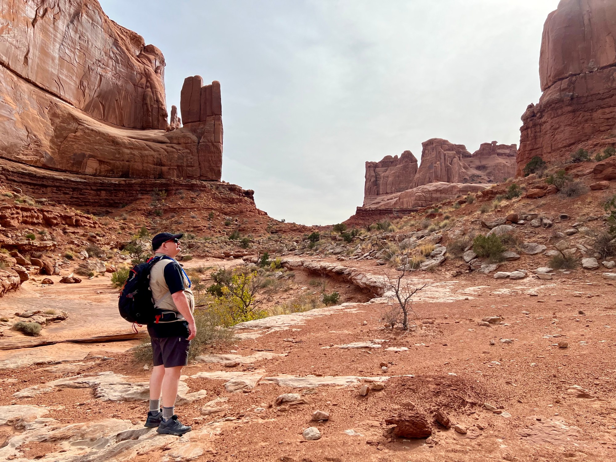 There was a small queue to get in, of about 15 minutes, but then we drove up to the Courthouse Towers, and parked where we had at night. This is located at the northern/lower end of Park Avenue, one of our favourite locations. We took our time, walking slowly and making the most of the views, and enjoying the peace and quiet. Very few people walk up between the towering cliffs, especially from this end. They typically just look at the view from the south and move along through the park.