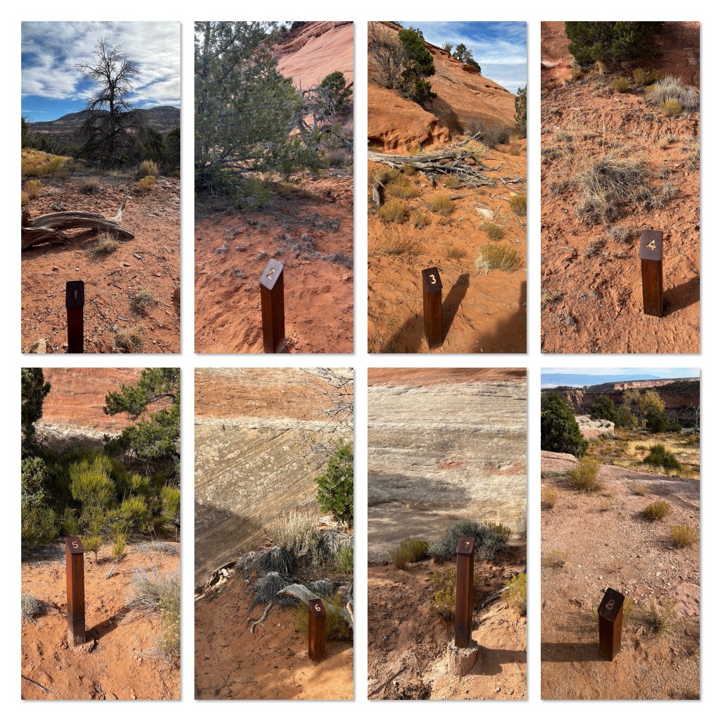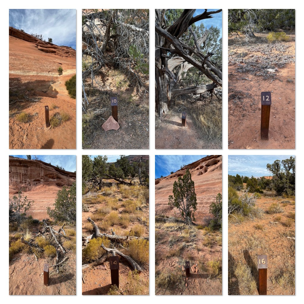 Our next destination was Otto’s Trail, which is a short half mile walk out along a ridge, providing views into Wedding Canyon, and of Independence Monument. We could see people below, at the turn around point that we reached, next to the Monument, when we walked up Monument Canyon on day 6. Also at the end of the walk was Pipe Organ, another pinnacle of rock.