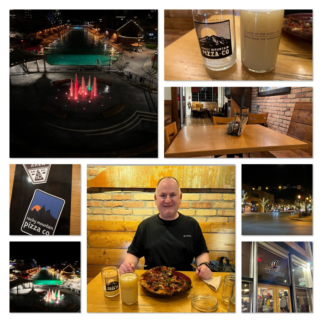 We checked in to the Best Western Antlers hotel just after 4pm. It is an older hotel, although refurbished, with a mountain lodge feel, also reminiscent of Grand Canyon lodges. We relaxed and then walked the half mile into downtown to search for dinner. Our hunt (courtesy of Andrew looking for Google recommendations) concluded at the Rocky Mountain Pizza Co, with Andrew declaring it possibly the best pizza he’d ever had…