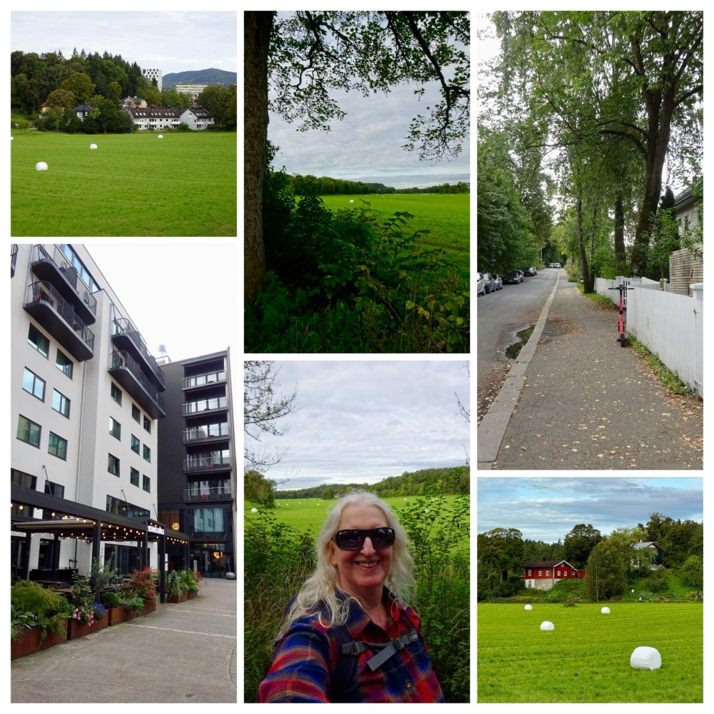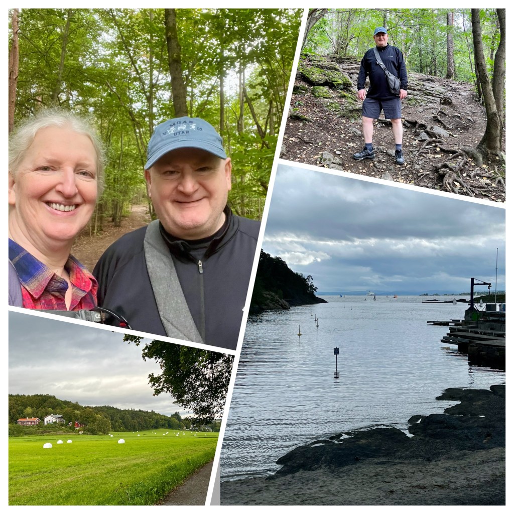 Today I chose to walk rather than take the bike. I headed firstly to the scenic bay I had accidentally discovered yesterday, Bygdøy Sjøbad. This was about 1.3 miles or so, mostly around the farmland. On arrival, I double checked with some locals (who were having a grill on the beach) that it was ok to swim. They confirmed that it was legal, but said it was too cold… Not daunted by this, I got ready and waded into the water. It was a beautiful morning, very still water in the bay, with the scenic forest casting shade over some of it. This turned out to also mean that the water in this bay was indeed colder, maybe around 12C. Still, I enjoyed swimming out along the length of the bay, before turning around. At times I just floated on my back, not needing to move arms or legs in the salty water, and enjoying the sunshine.