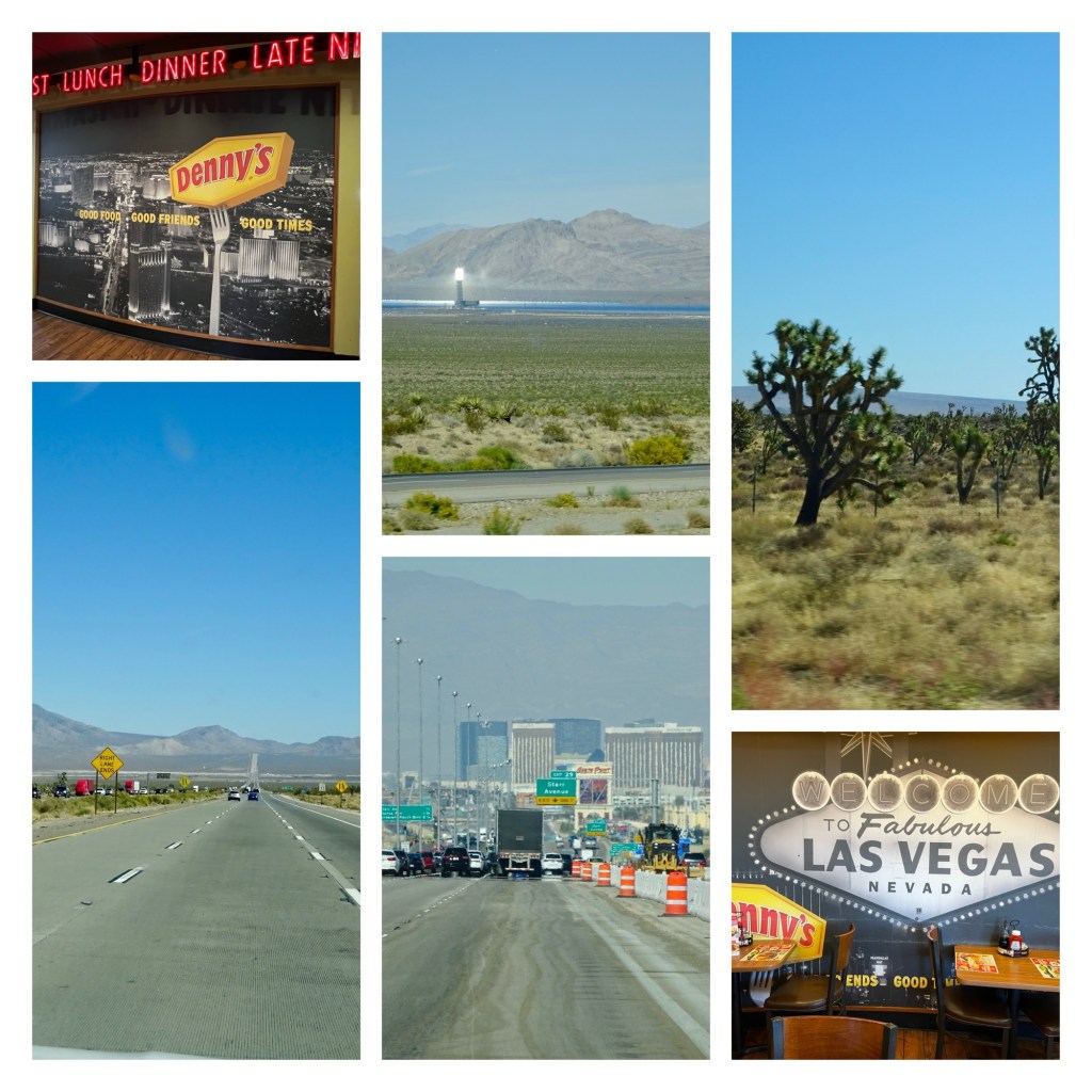 I got up and made coffee, Andrew put the TV on, and we opened the curtains to a view of storage containers (they are refurbing some of the rooms), and the gradual orange glow of sunrise. We (mostly me) decided on a local diner, Spires Restaurant, for breakfast, had showers, washed my hair (oh, that felt nice), and left the hotel at 0845. Breakfast was very good and very filling, but an hour later we were on our way to Las Vegas.