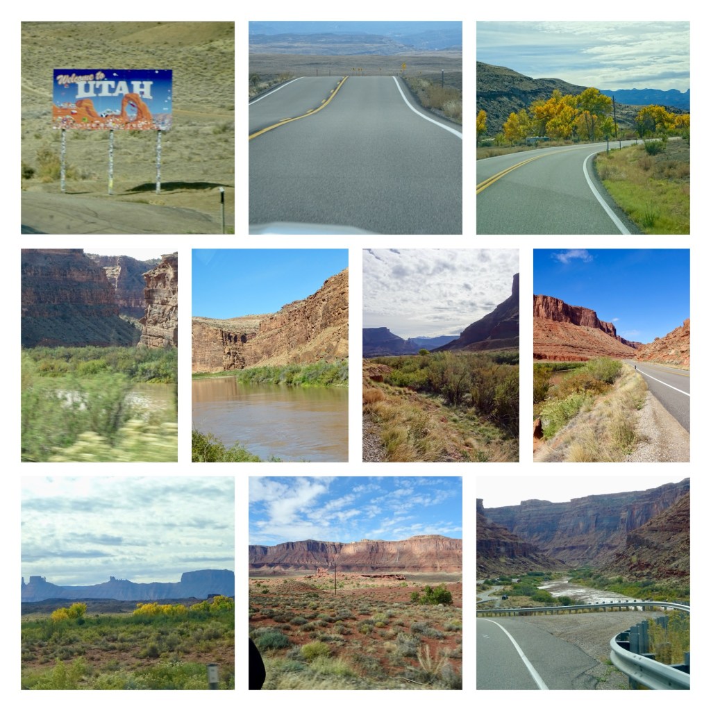 We have travelled some 515 miles east of Los Angeles in the last week, and it’s now time to start heading west again, although we’re only nibbling at that distance today, as Moab is just 50 miles, or so, further west, back on I-70 and then down the river road. The trees on I-70 are changing colour and look very pretty, adding to the sight of the snow on the mountains as we drove along. We passed out of colourful Colorado, and into Utah, and soon turned down highway 128, generally called the river road.