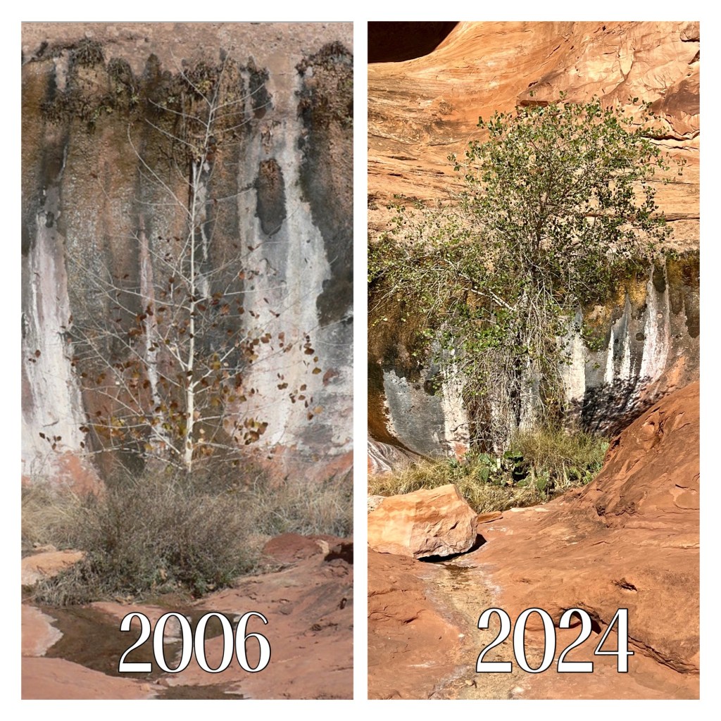 There is a tree growing in one of the basins below the Bow tie Arch, which was there when I did this hike in 2006. It has grown quite a lot in the meantime.
