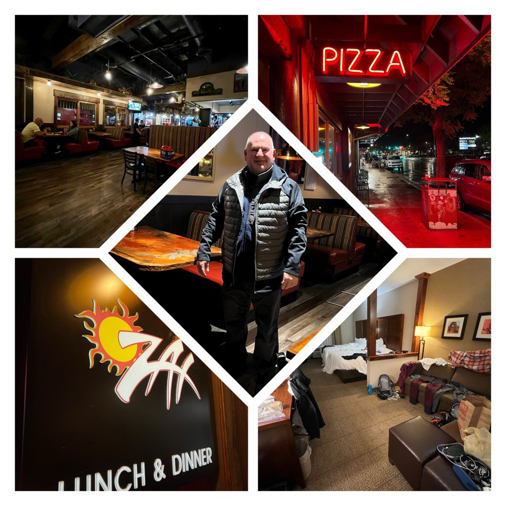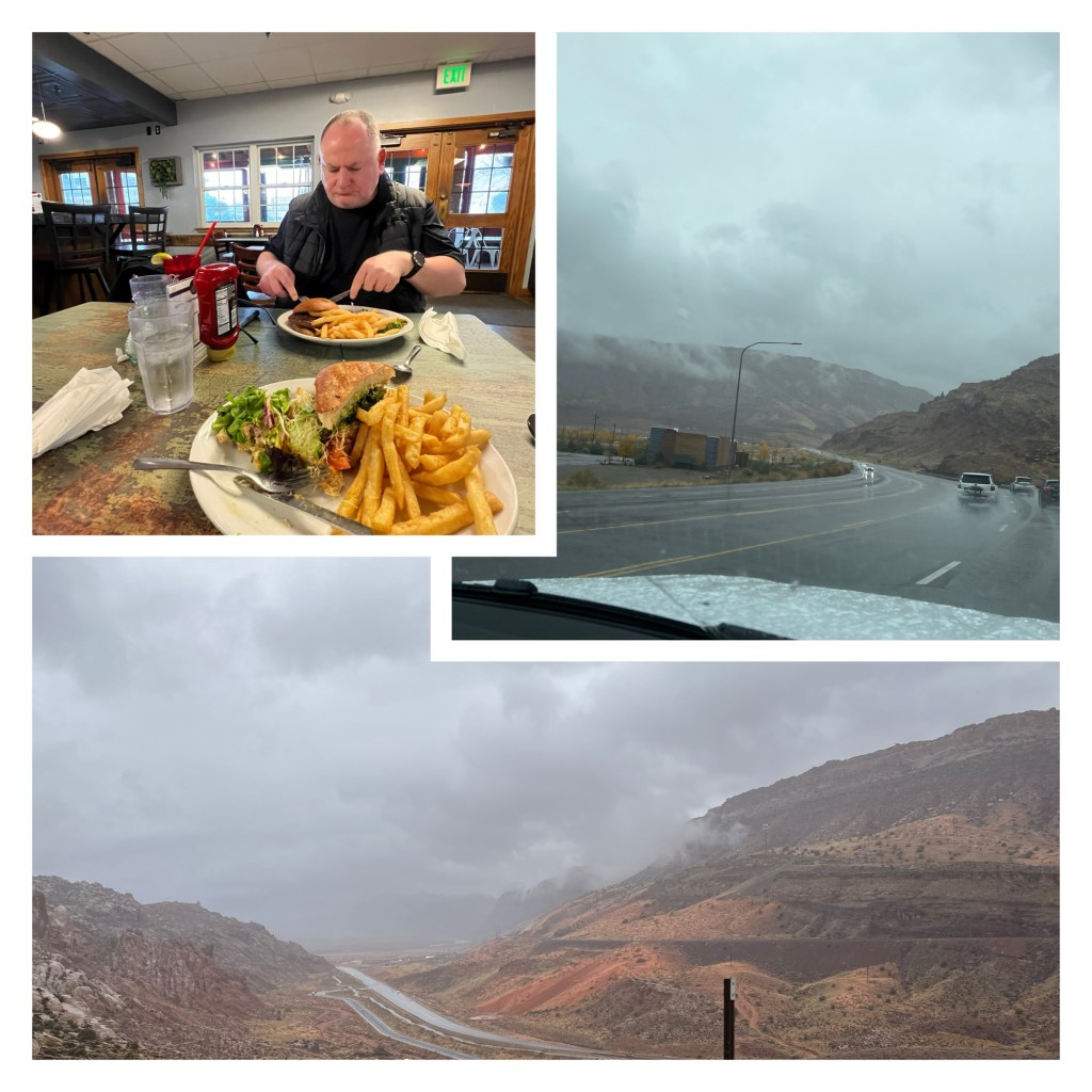 After a vanilla coffee, some cookies and a hot shower, we were suitably warmed up and ready to head out to Zax’s for dinner. One final evening in Moab, and tomorrow we’ll need to pack up and leave. Which based on the spread of our belongings might take some time (although at least they should all be dry by morning!).