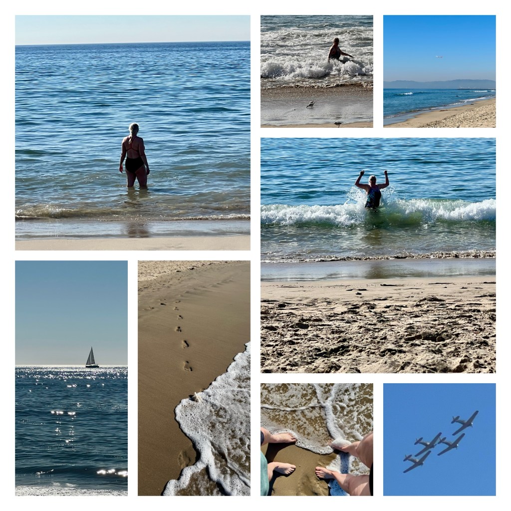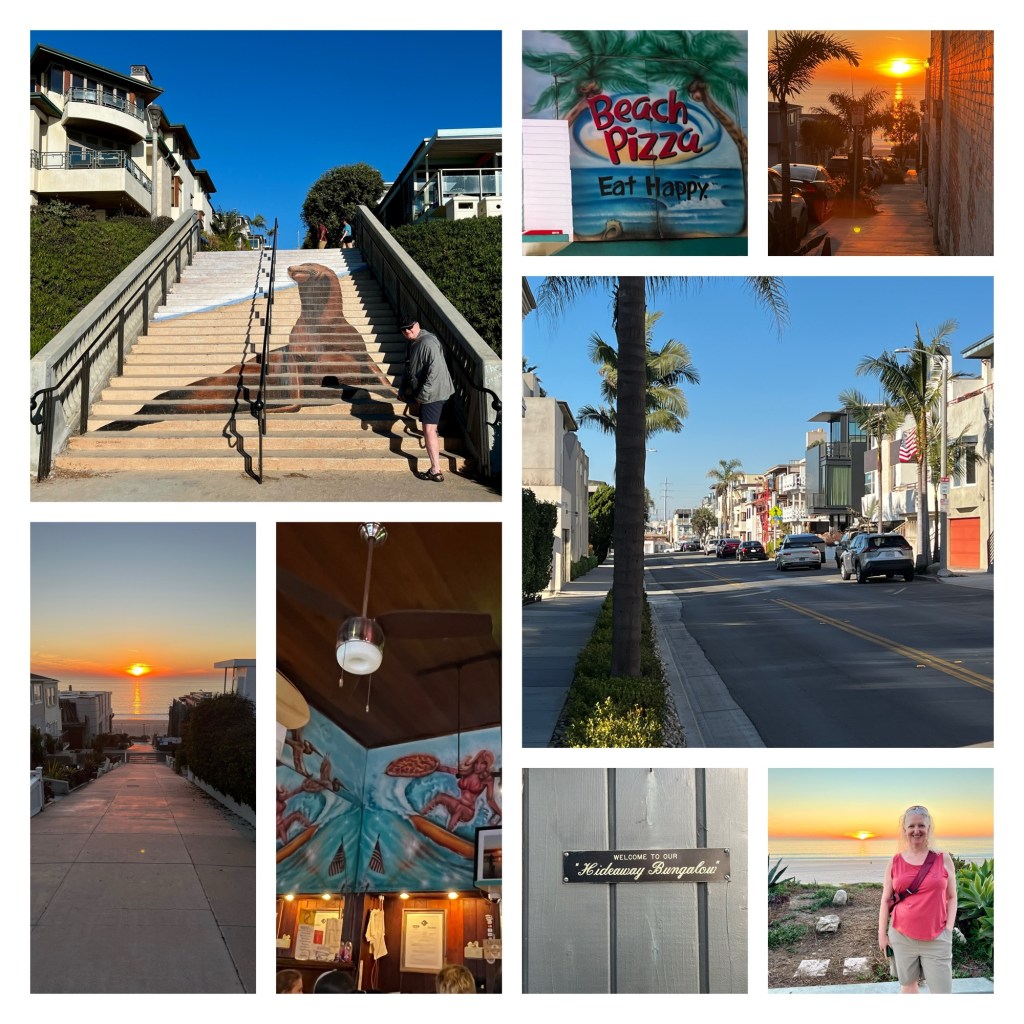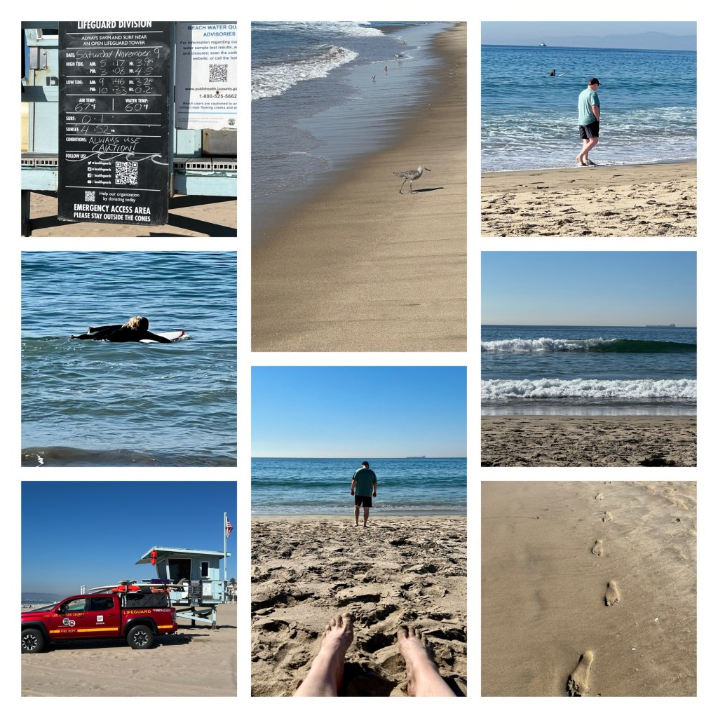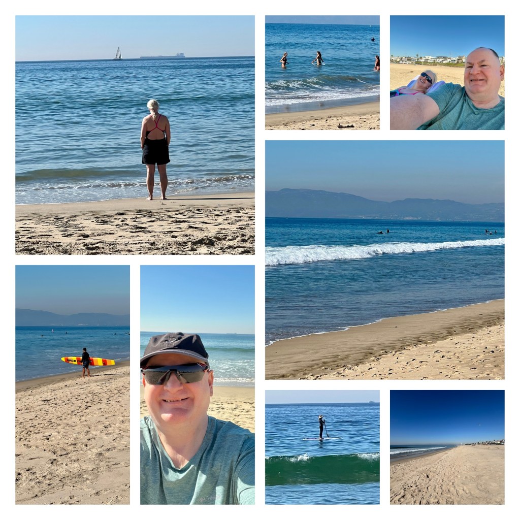 A slightly unsettled night, as I was a bit cold (yes, despite being in California) and the pillow was a bit bouncy for my liking, but I still got a reasonable number of hours in. I read the news for a bit before going and making coffee, which I drank outside on our private deck. After that, we went out for food. I was really hungry probably because, apart from some cookies, we hadn’t eaten since yesterday afternoon. Our chosen venue was The Local Yolk, a busy cafe just around the corner from our bungalow. The breakfast was excellent, and mine came with two – yep, two – banana muffins, and I ate everything. I did say I was hungry. The area is very cute, with a lovely feel. Last night we both said we were never coming through LAX again, due to the traffic, but today we thought this area was lovely and almost worth a repeat visit. It is a bit of a Key West or St Augustine vibe, albeit not as old as the latter.