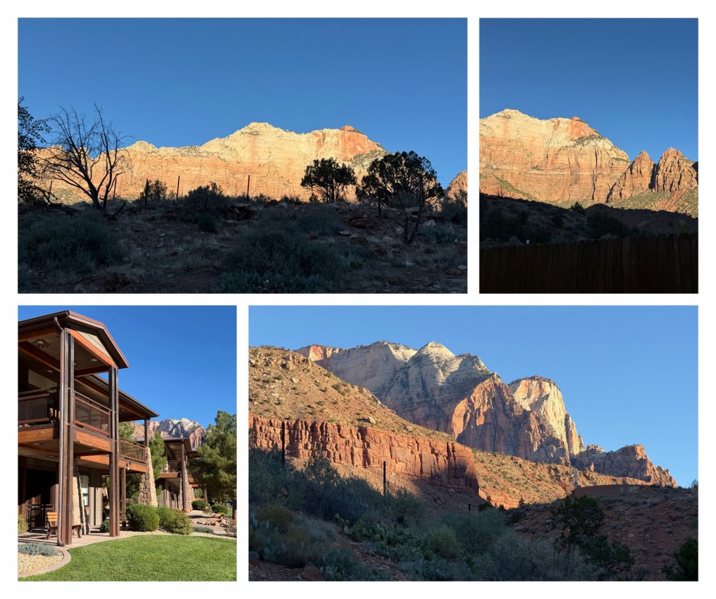 The drive back down was just as beautiful, as the afternoon sun lit up the adjacent cliffs. Back in Springdale, we called in at Sol’s supermarket, where the car just fitted in the car park.