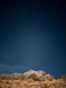 The route crosses meadow and weaves between pine trees, most of which had already lost their jumbo sized pine cones, which decorated the ground. The trail is sandy in places (as with many Zion trails – it is all sandstone, after all) and Andrew’s new black boots were soon a paler shade than when he began hiking.