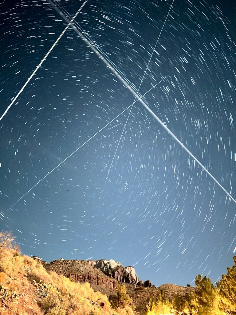 After that, it was time to relax, shower and go for dinner, which tonight we had at the Scout Bar & Grill, part of our hotel complex. I then decided to try some star photography, which this time I’m doing in my phone using a special app. I have to say, it was quite fun. Unlike my camera, where you take a photo, and have absolutely no idea what it looks like until it’s finished, the star trails photo ‘develops’ in front of your eyes, so you can decide when to stop. The one I took tonight was just 10 minutes of activity.