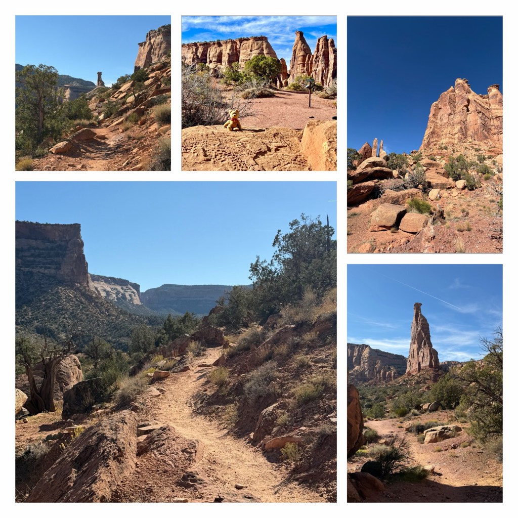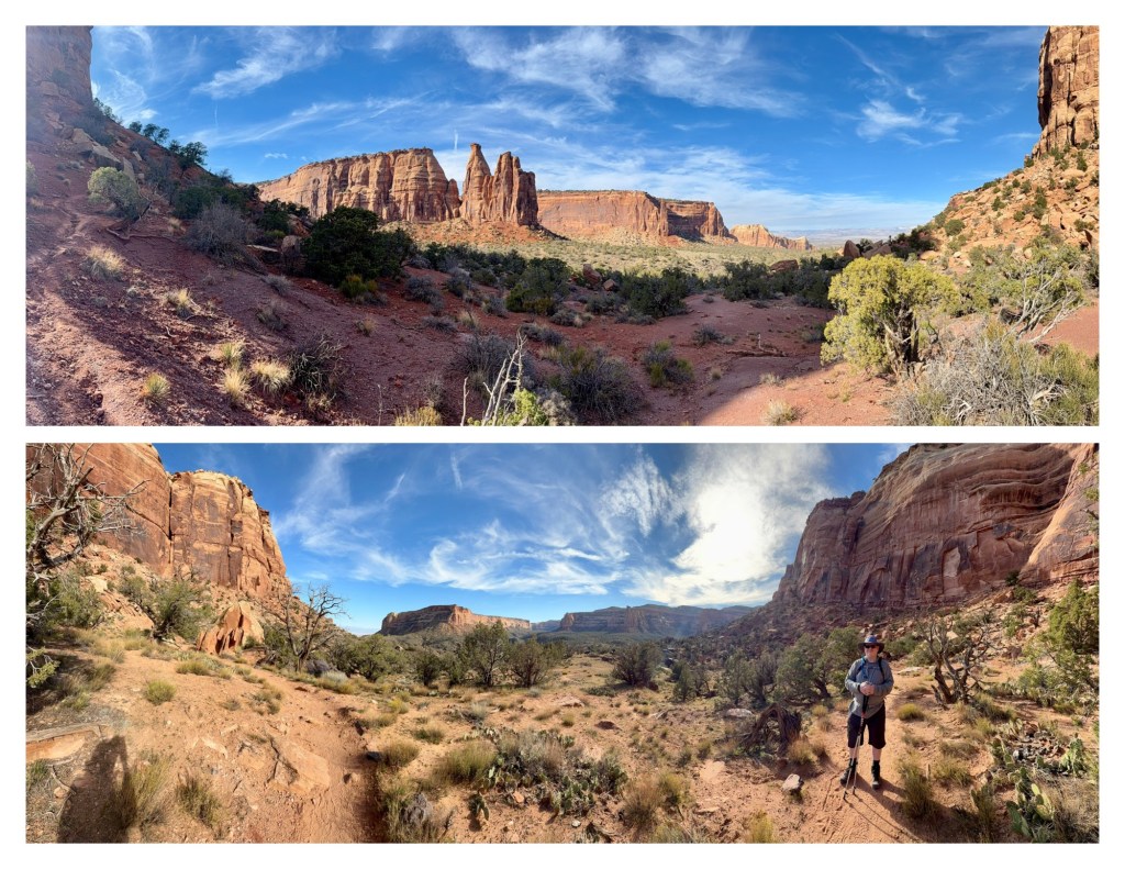 7.28am! Woohoo! Andrew woke just 11 minutes later, and decided that I could go and get coffee from the lobby. The tone was accordingly set for a leisurely start, with showers and breakfast at the hotel. The view from the room confirmed blue skies and sunshine, whilst various weather apps coalesced around 20 degrees as the forecast high. Toasty enough, but not as hot as Zion. Once we set off, it was just a 15 minutes drive to the Lower Monument Canyon trailhead.