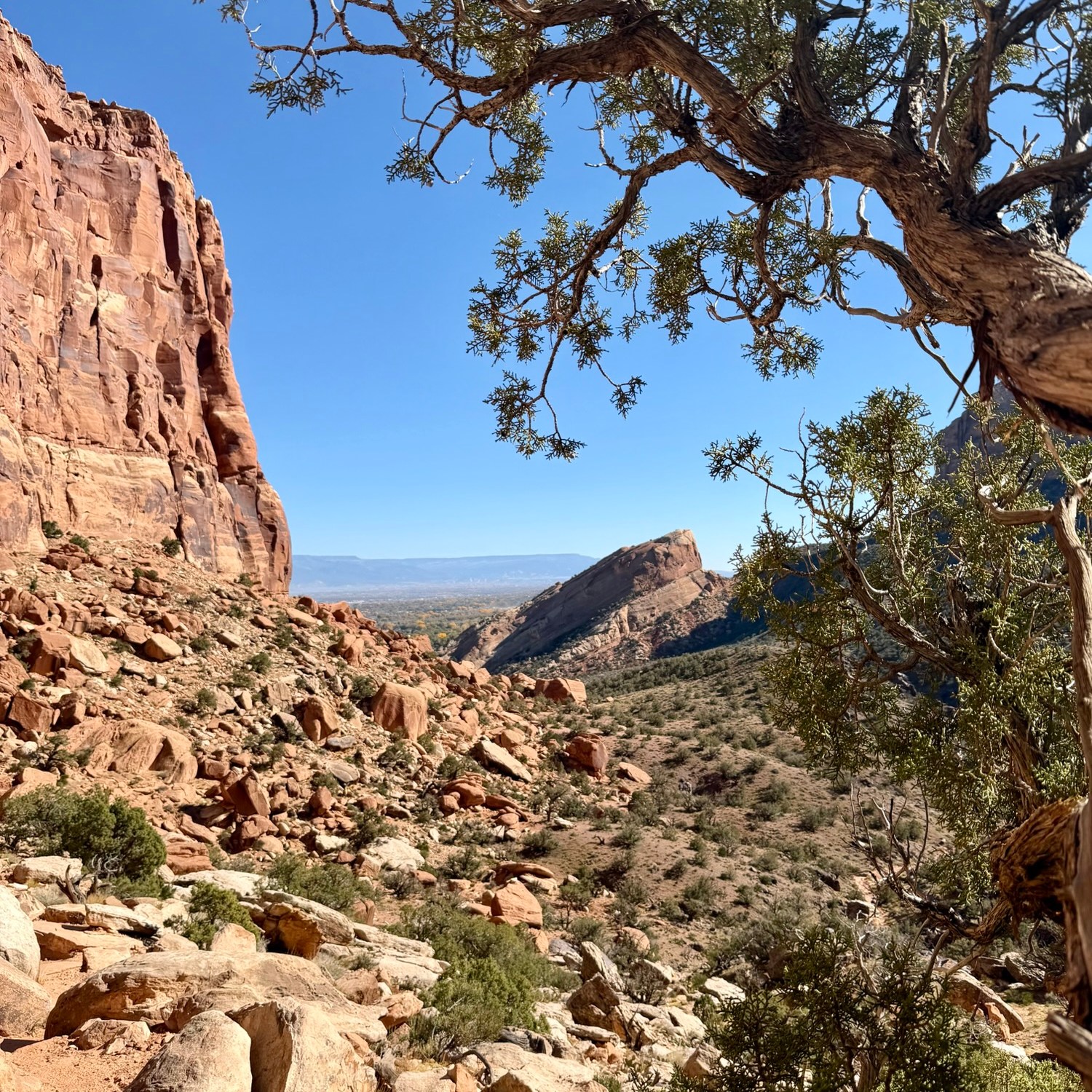 7.28am! Woohoo! Andrew woke just 11 minutes later, and decided that I could go and get coffee from the lobby. The tone was accordingly set for a leisurely start, with showers and breakfast at the hotel. The view from the room confirmed blue skies and sunshine, whilst various weather apps coalesced around 20 degrees as the forecast high. Toasty enough, but not as hot as Zion. Once we set off, it was just a 15 minutes drive to the Lower Monument Canyon trailhead.