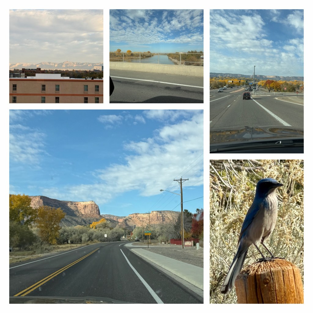 After breakfast (sadly the pancake machine failed today), showers and packing for the day we drove over the Colorado River and up to the Colorado National Monument visitor centre. This was closed due to the government shutdown, but was the starting point for our hike today, up onto Black Ridge. A bluejay was teasing me in the car park, but did eventually pose for a photo.