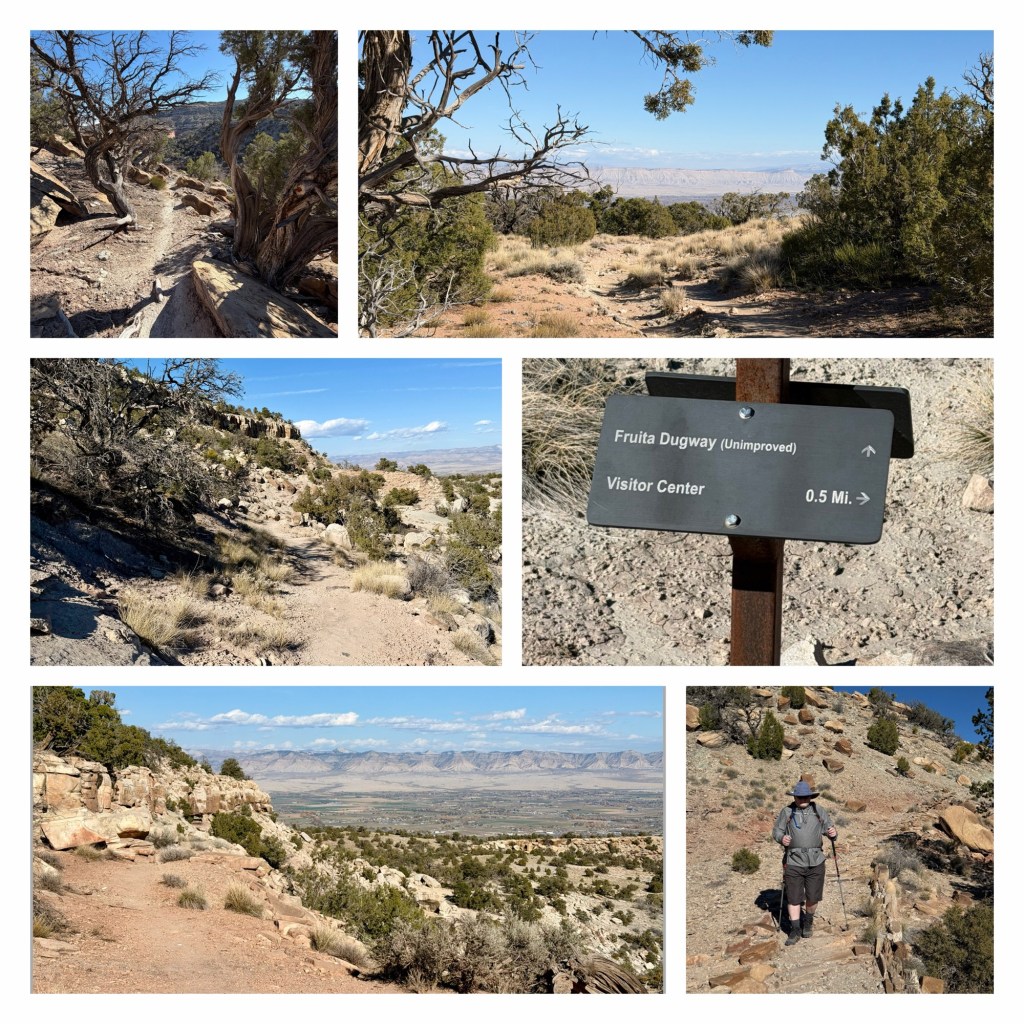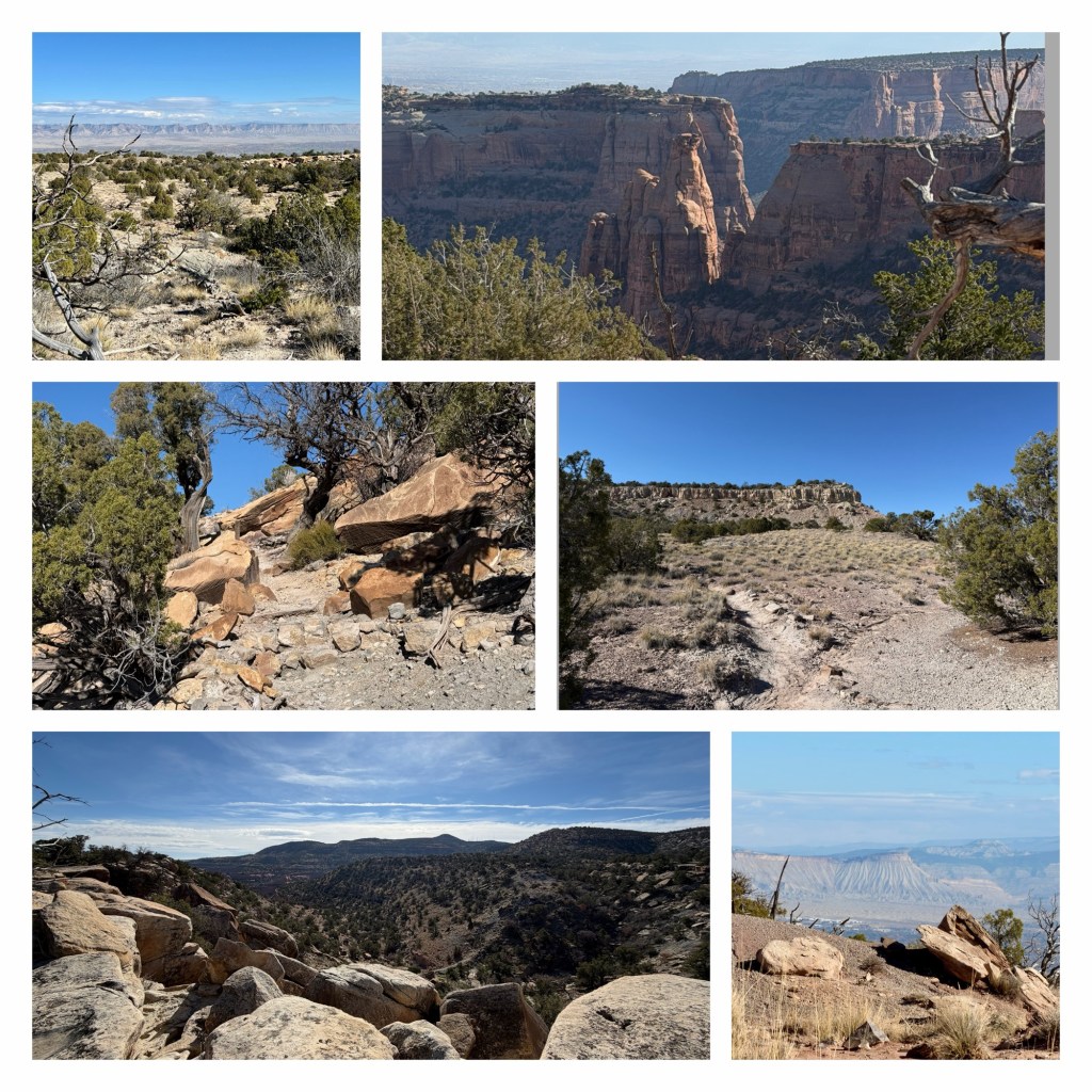 This trail is the highest in the park, and is mostly in the BLM managed McInnis Cactus Conservation Area, which abuts the Monument lands. It has great views across the Grand Valley, over to the wonderfully crinkled Book Cliffs, named because they resemble a sheriff of books. Incidentally, the Grand Valley and Grand Junction are named after the Grand River (and its junction with the Gunnison River), which was the name of this section of the Colorado until 1921, when its name was changed to reflect the state the majority of the water came from. Until then, technically the Colorado River started in Utah.