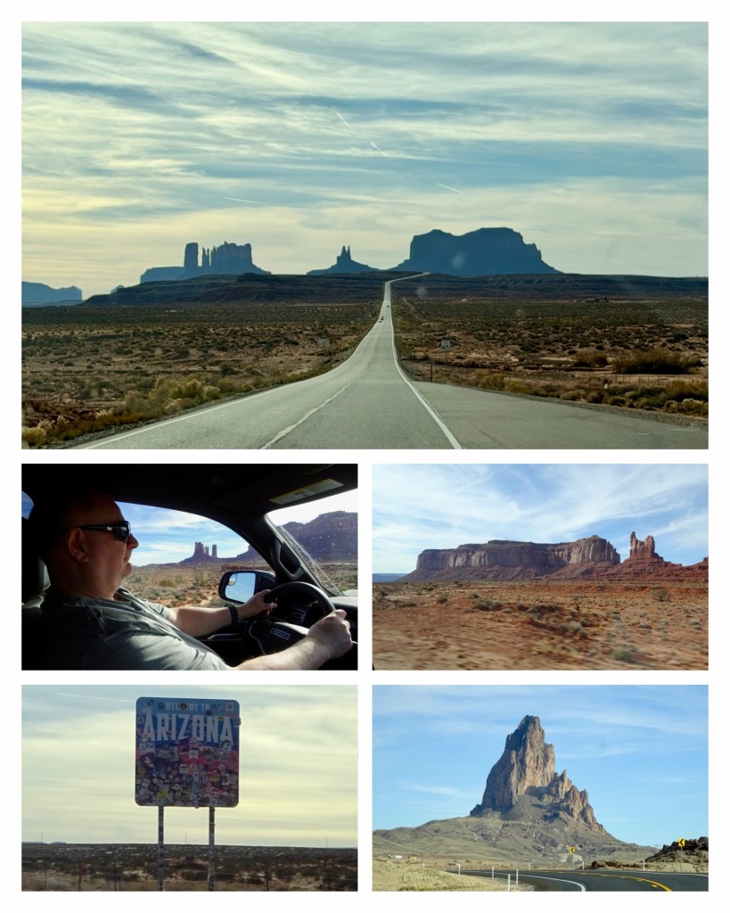 Andrew did the first stint of driving, with a brief stop at Blanding museum, then passing the familiar landmarks of Mexican Hat, the San Juan river, Monument Valley and various volcanic plugs including Agathla Peak, before pulling in to the car park outside Subway in Kayenta, where we got lunch.