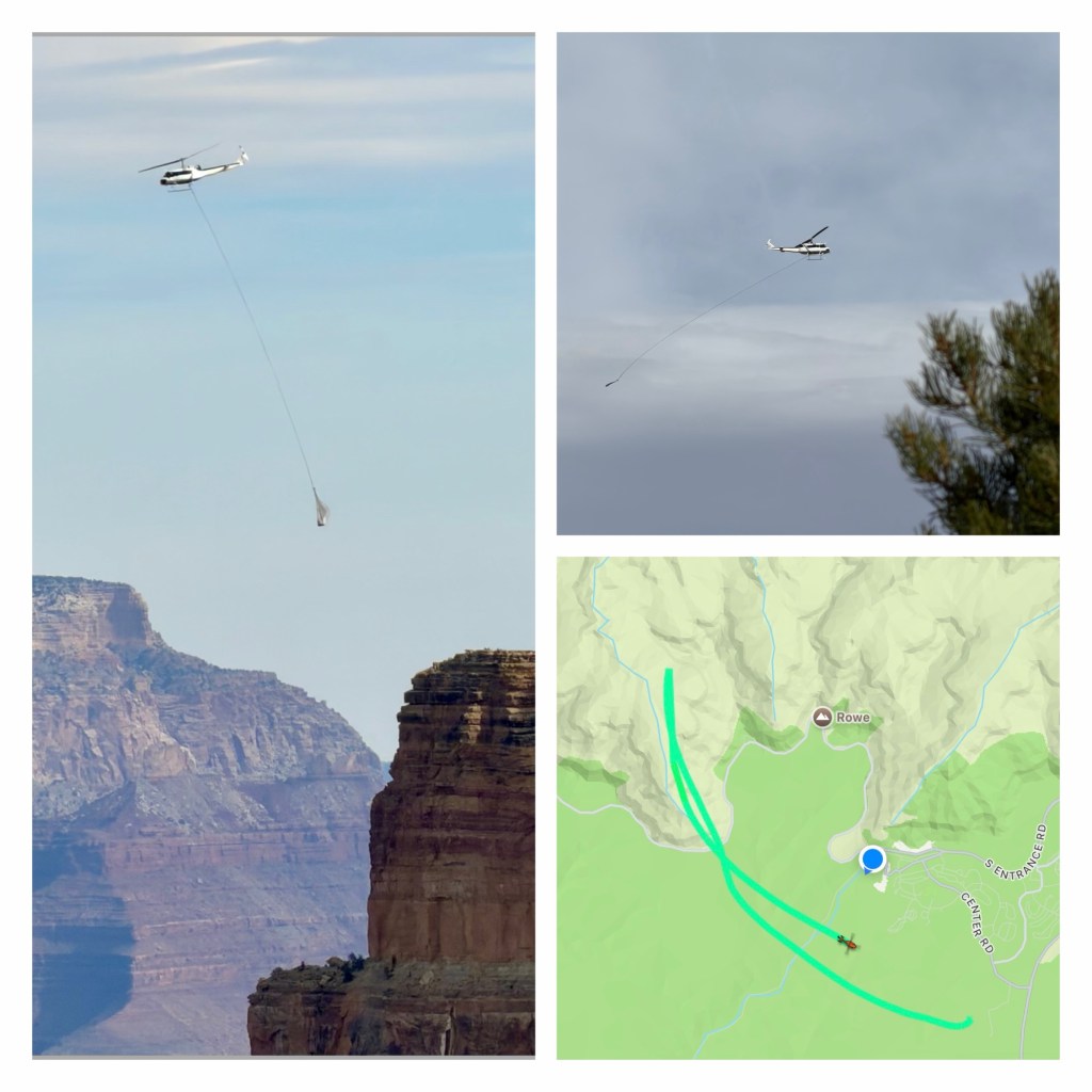 The whole time there were helicopters taking loads into the canyon. We suspected, and the bus driver confirmed, that they were taking supplies down as part of the Trans Canyon pipeline project, replacing three miles of water pipes, along with a similar length of electricity cable, and a new water treatment plant at Phantom Ranch. We also had a fly past by a (suspected) F18, probably out of Nellie AFB in Las Vegas. In between this, the canyon was very quiet…! We didn’t see that many people (except at the shuttle stops). We did pass and repass one other couple, also hiking the rim trail as a ‘rest day’…