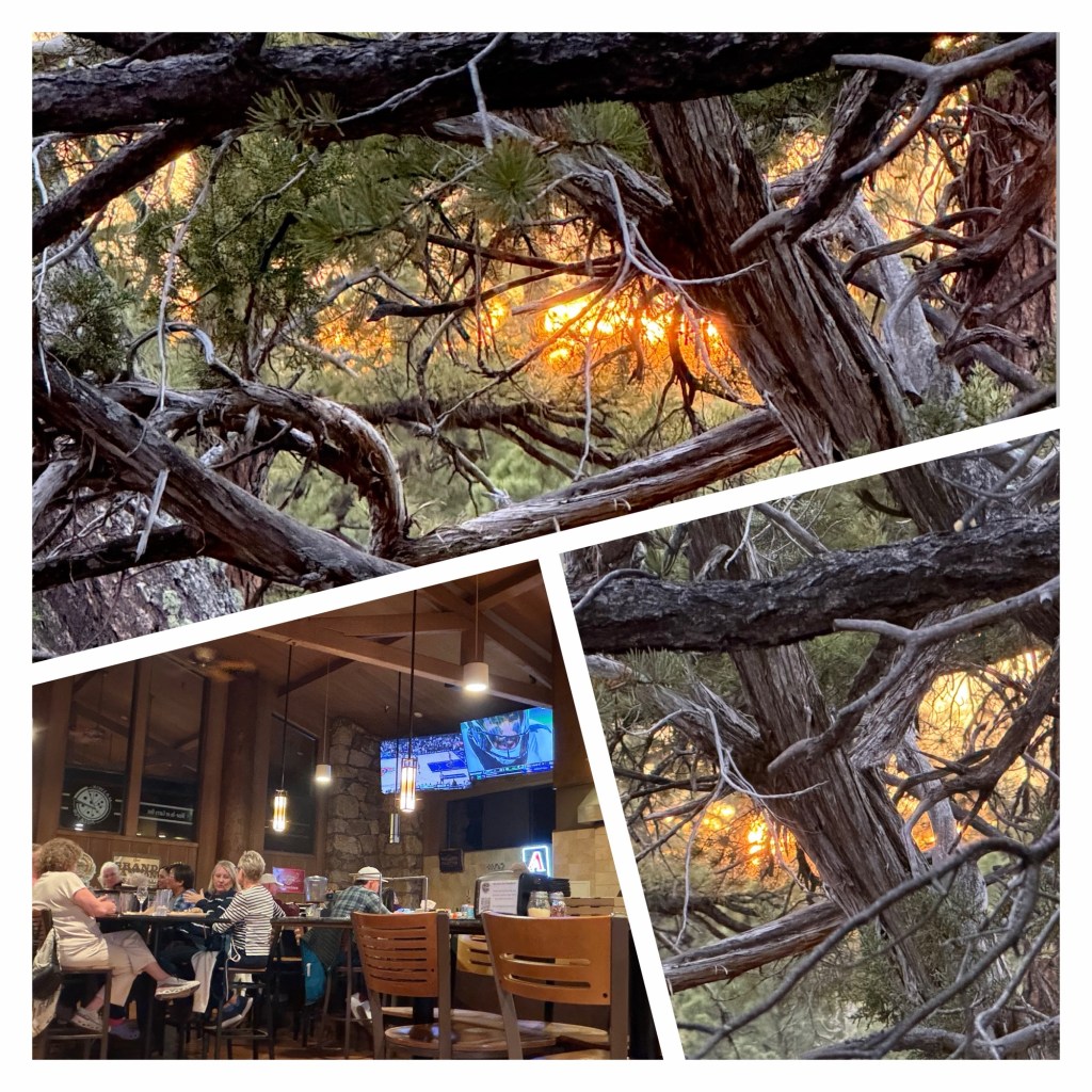 We got the bus back to the village, although this meant taking a bus two stops in the wrong direction first, as they don’t so everywhere in both directions. We sat out on our balcony for beer, and nutritional snacks, and relaxed while wondering if the sun would appear from behind the clouds in time for sunset. It sort of did. With fifteen minutes to go, it peaked out, a thin golden line between the trees, although by that time it is unlikely it would have been casting any light into the canyon itself.