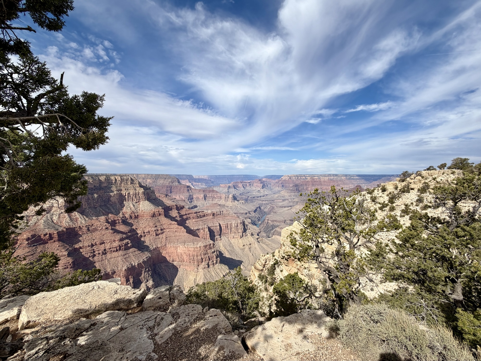 We made our way to the start of the Hermit Road and took the shuttle all the way to the end on the line at Hermit’s Rest, where we started hiking back. We ambled along, and did about half of this section of rim trail, just over 4 miles. The views speak for themselves…